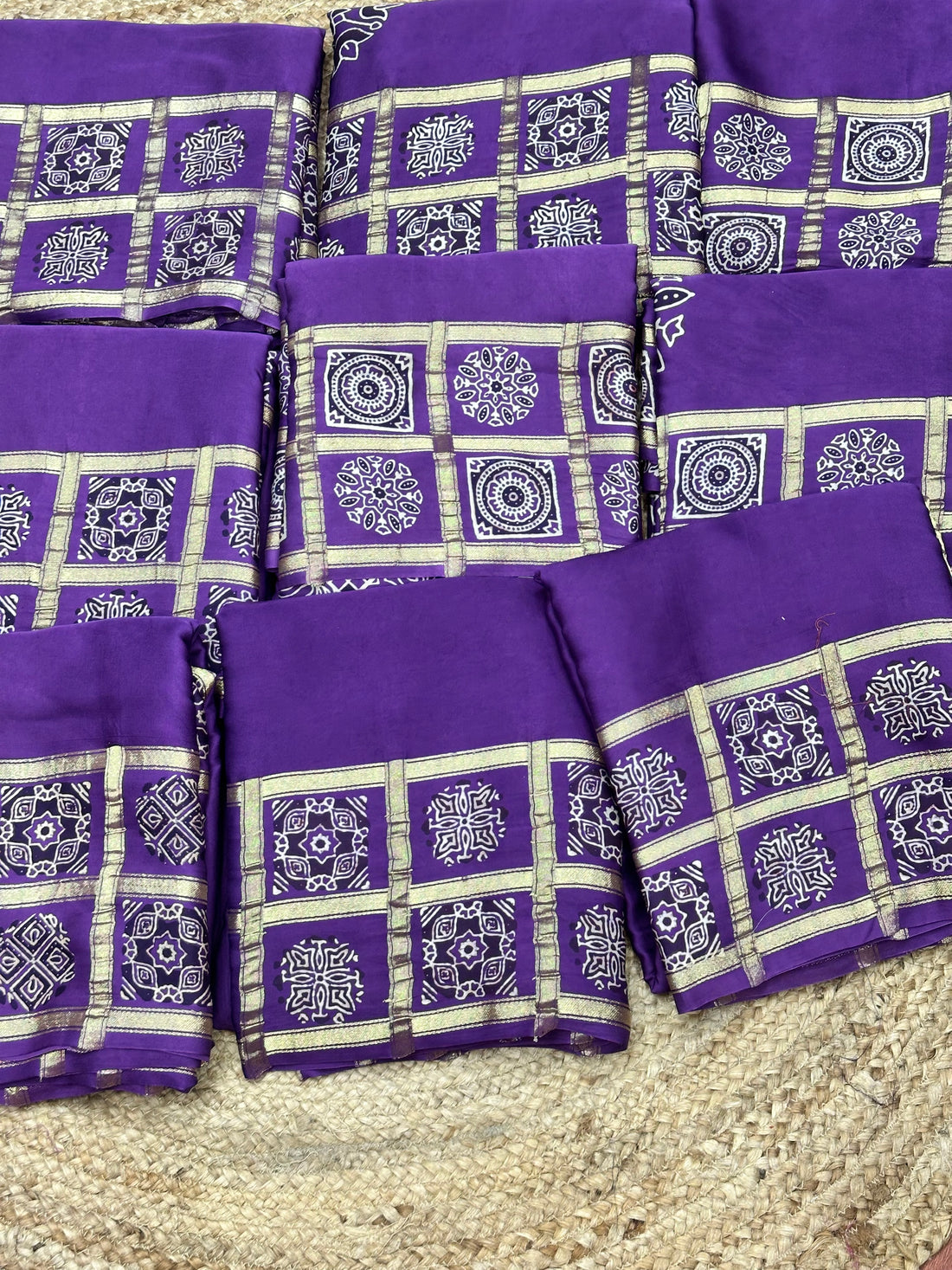 Pure purple modal Ajrak sarees