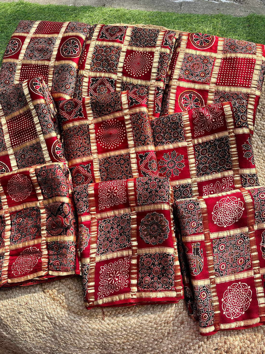 Maroon pure Ajrak block prints all over the body