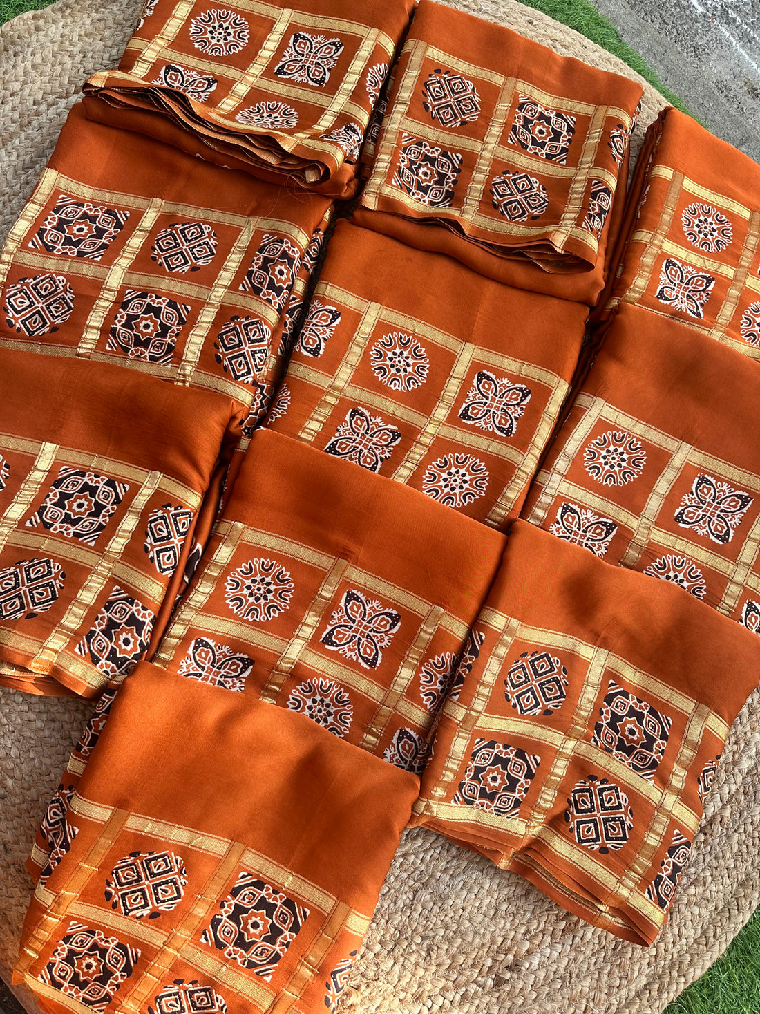 Rust orange with brown pure crepe Banaras sarees