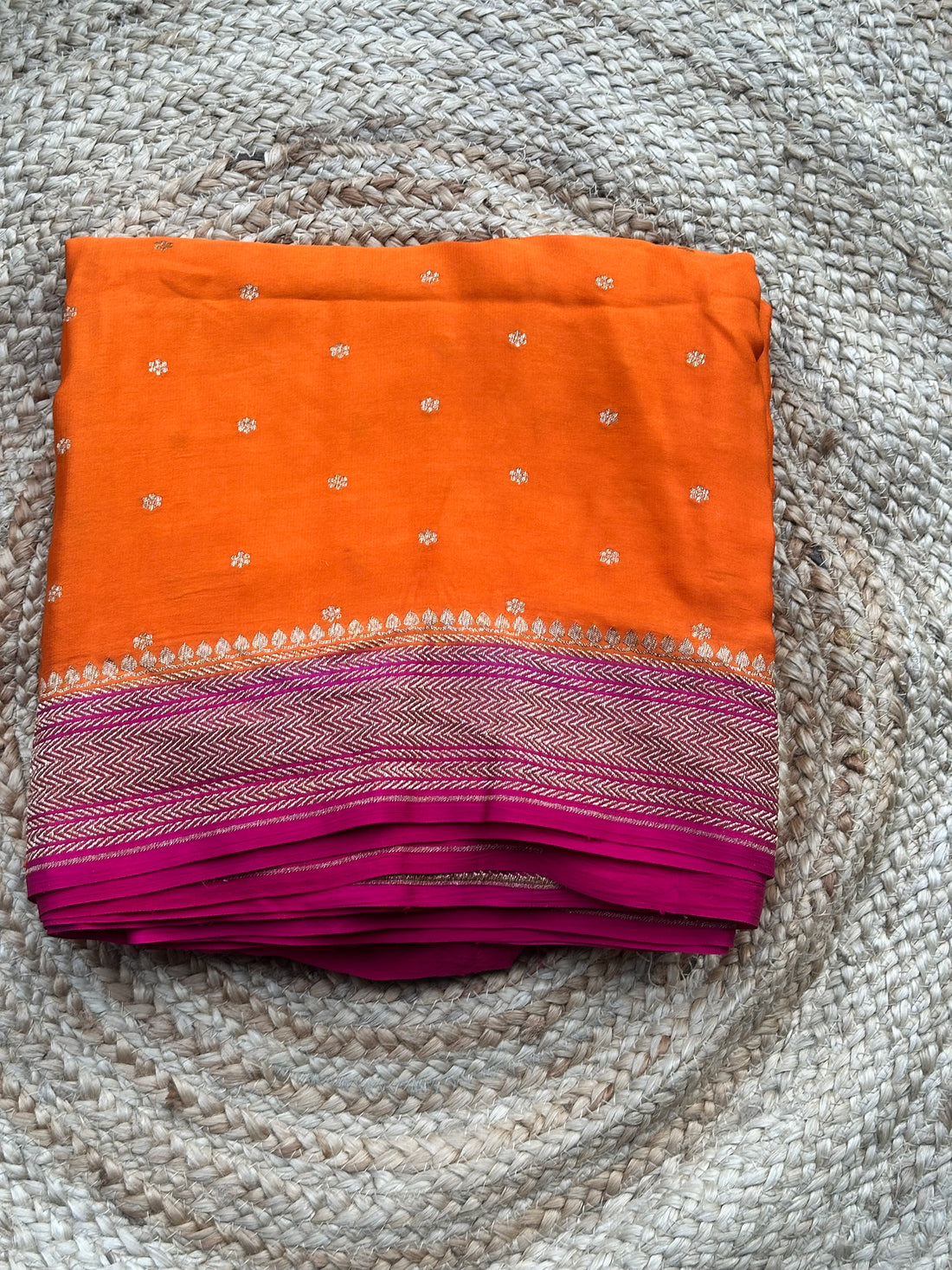 Orange and pink pure crepe Banaras silk sarees