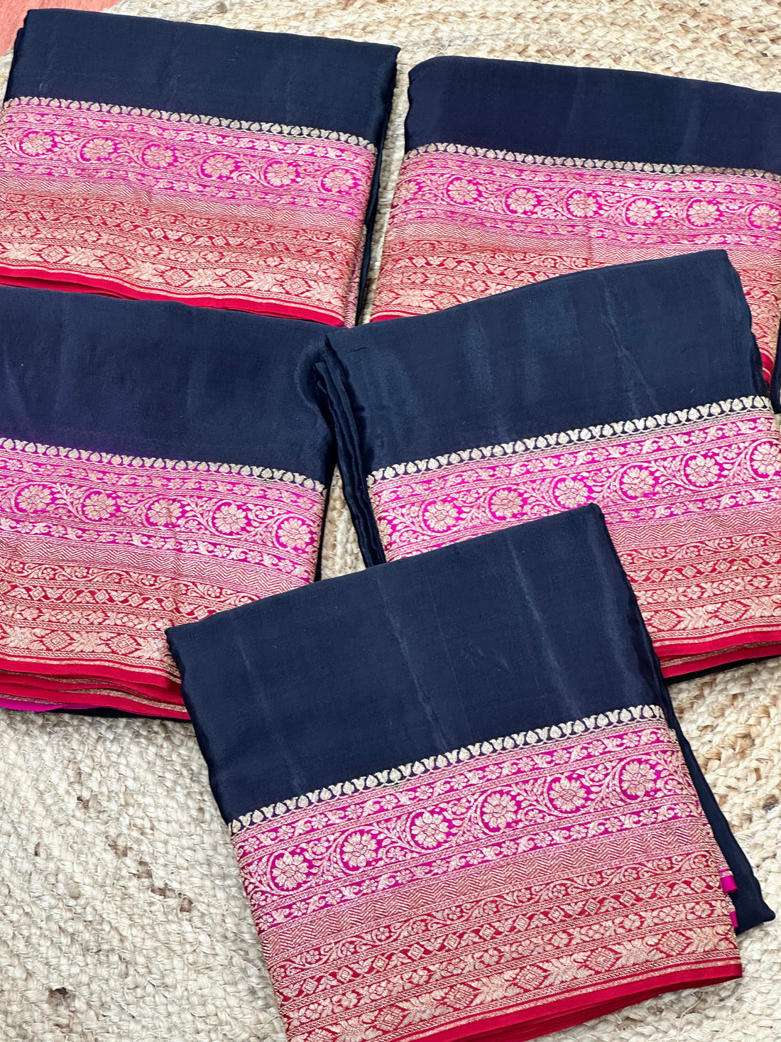 Dark blue with baby pink pure crepe Banaras sarees