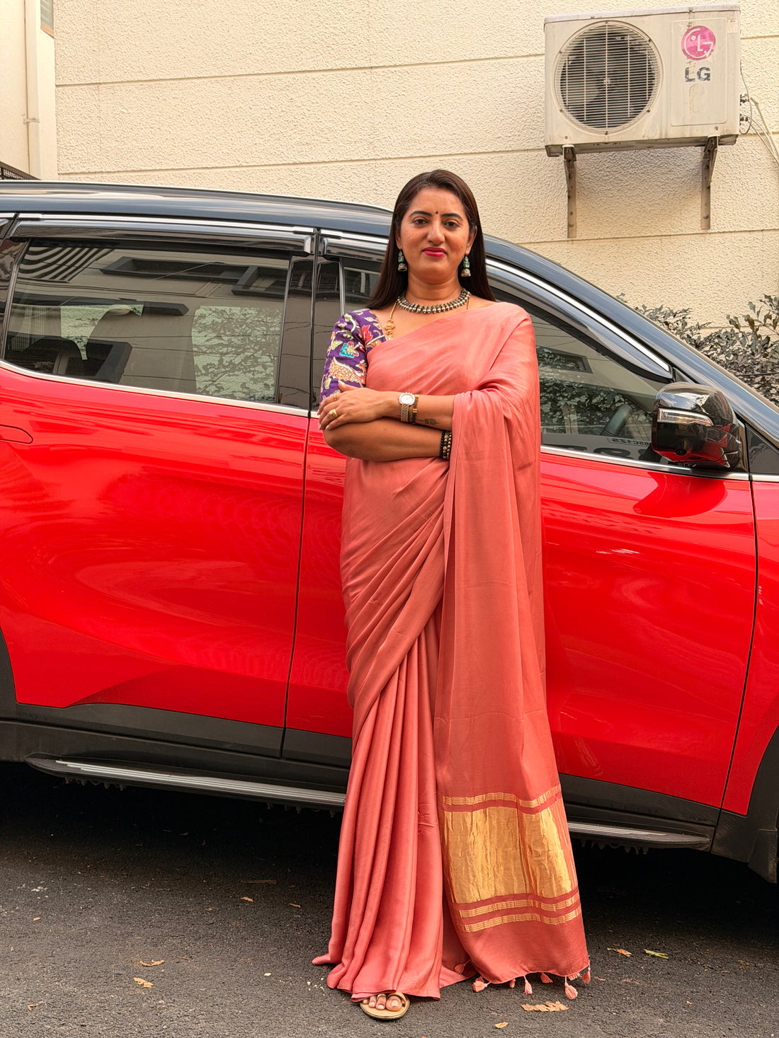 Onion pink pastel pure modal silk with tissue gajji pallu and tussles