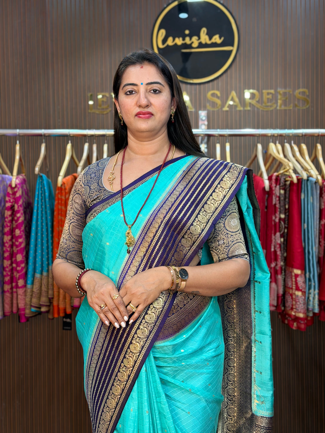 Deep purple and mint green crepe chiffon Banarasi sarees