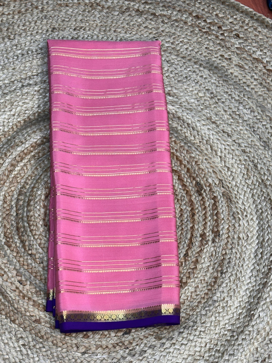 Onion pink and purple pure Mysore silk crepe with small contrast border