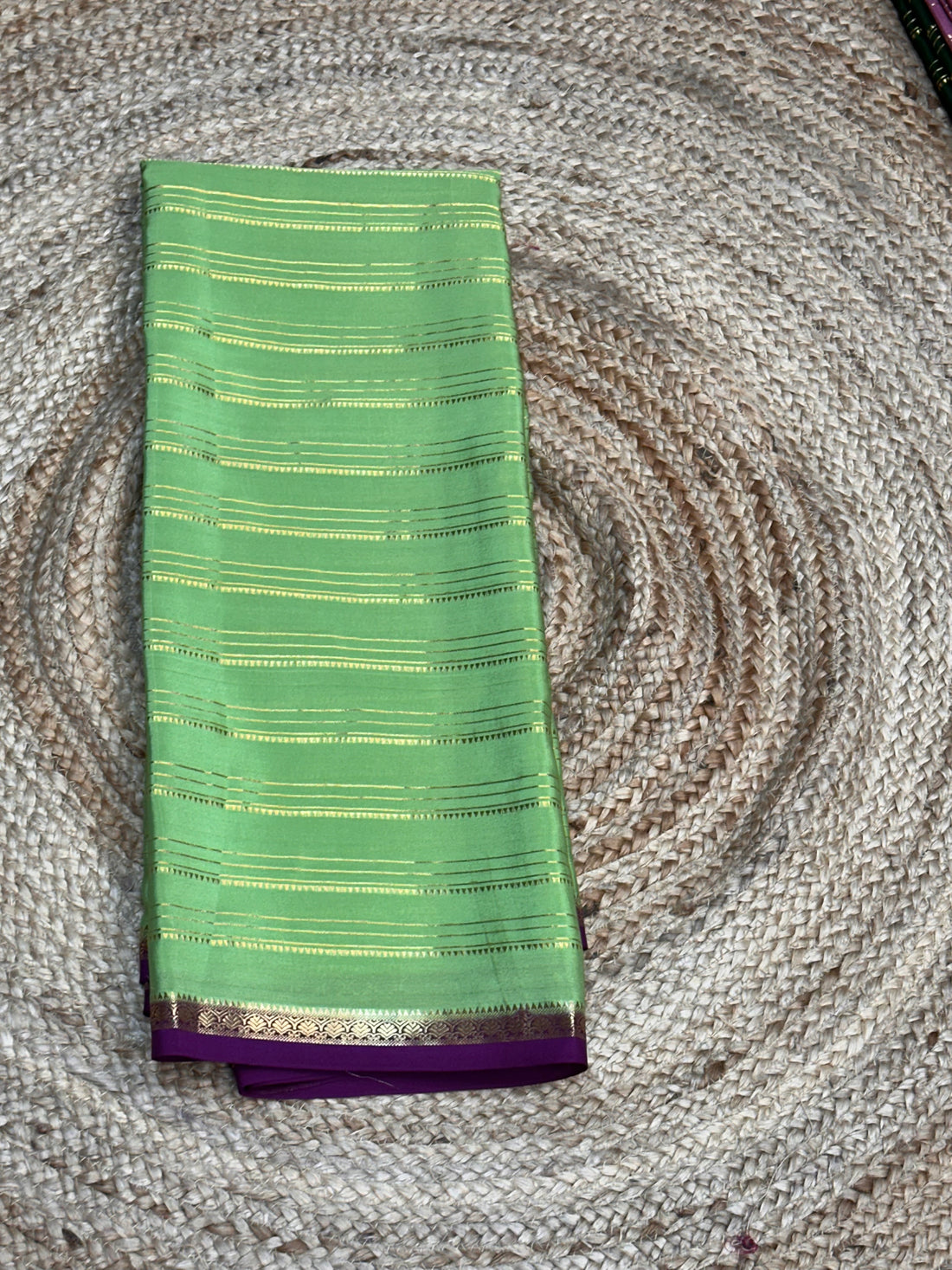 Pastel green and purple pure crepe Mysore Silk sarees 110 gsm