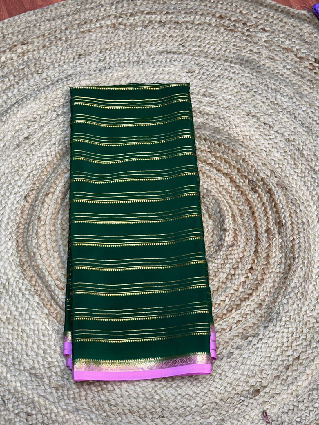 Green and pink pure crepe Mysore Silk sarees 120 gsm