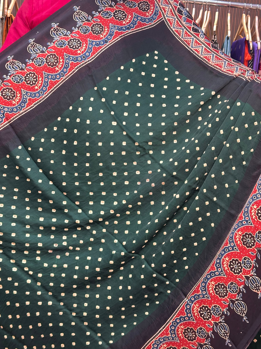 Green and red pure Ajrak modal Sarees