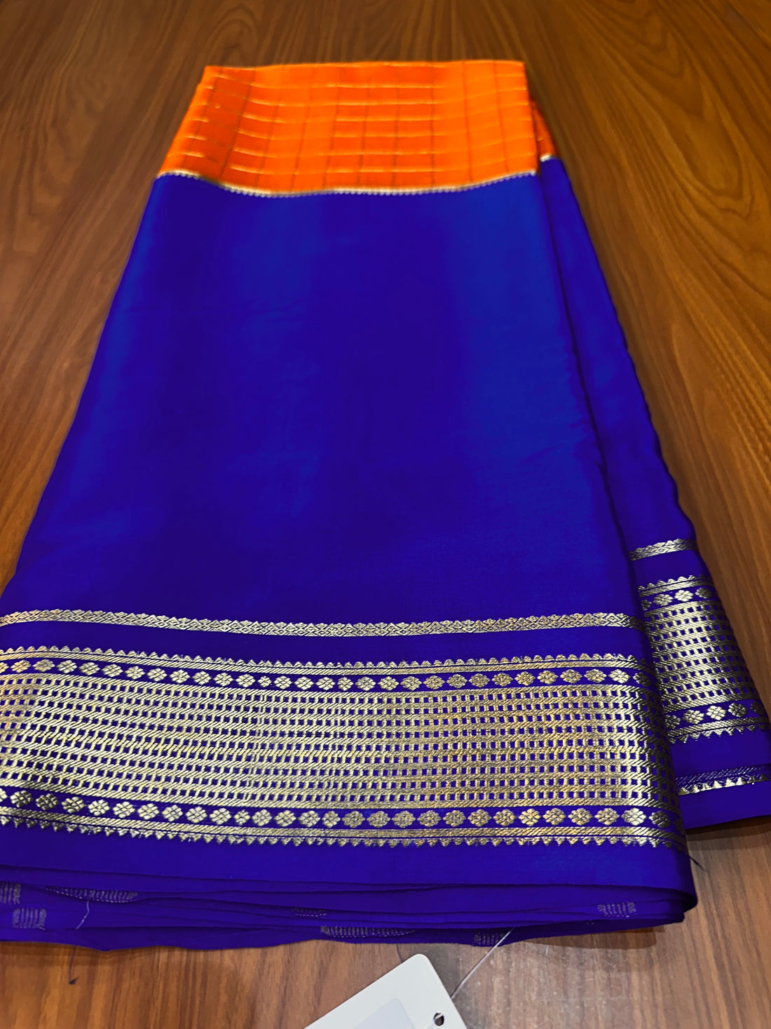 Orange and purple pure crepe central checks pattern 120 gsm