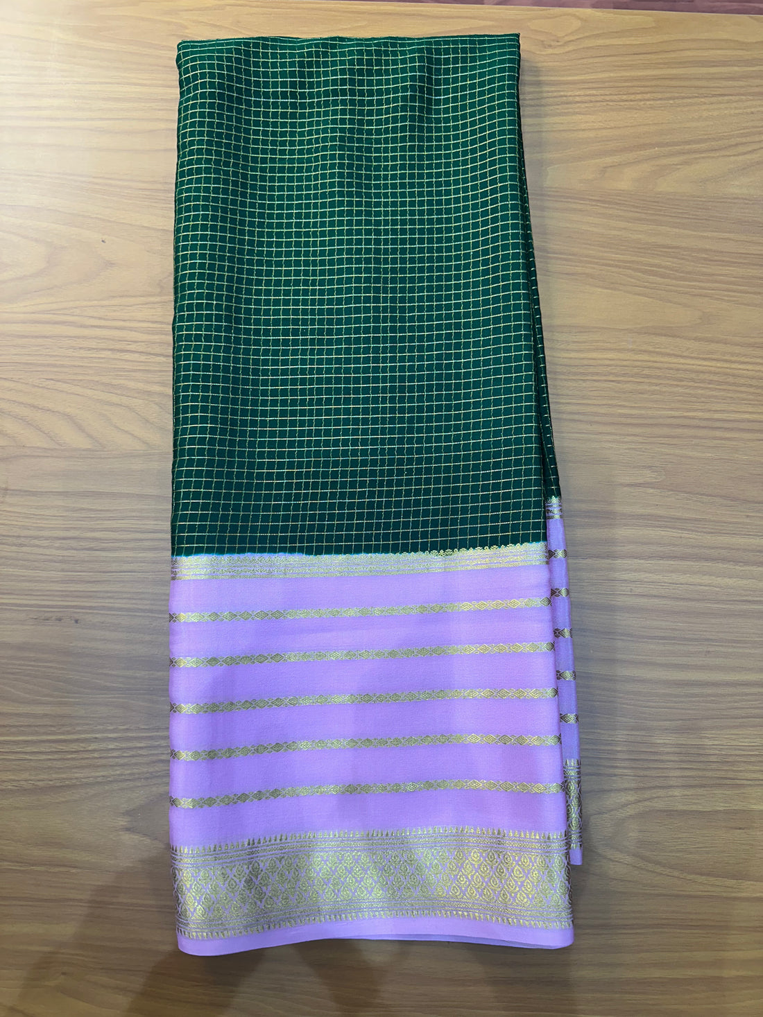 Mustard and bottle green pure crepe Mysore Silk 120 gsm
