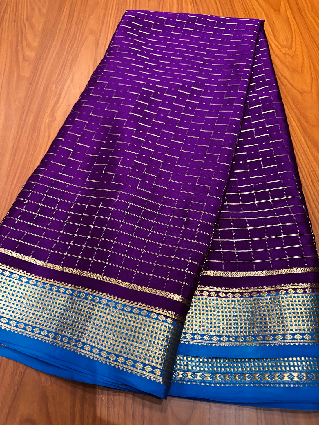 Pure crepe mysore silk purple checks