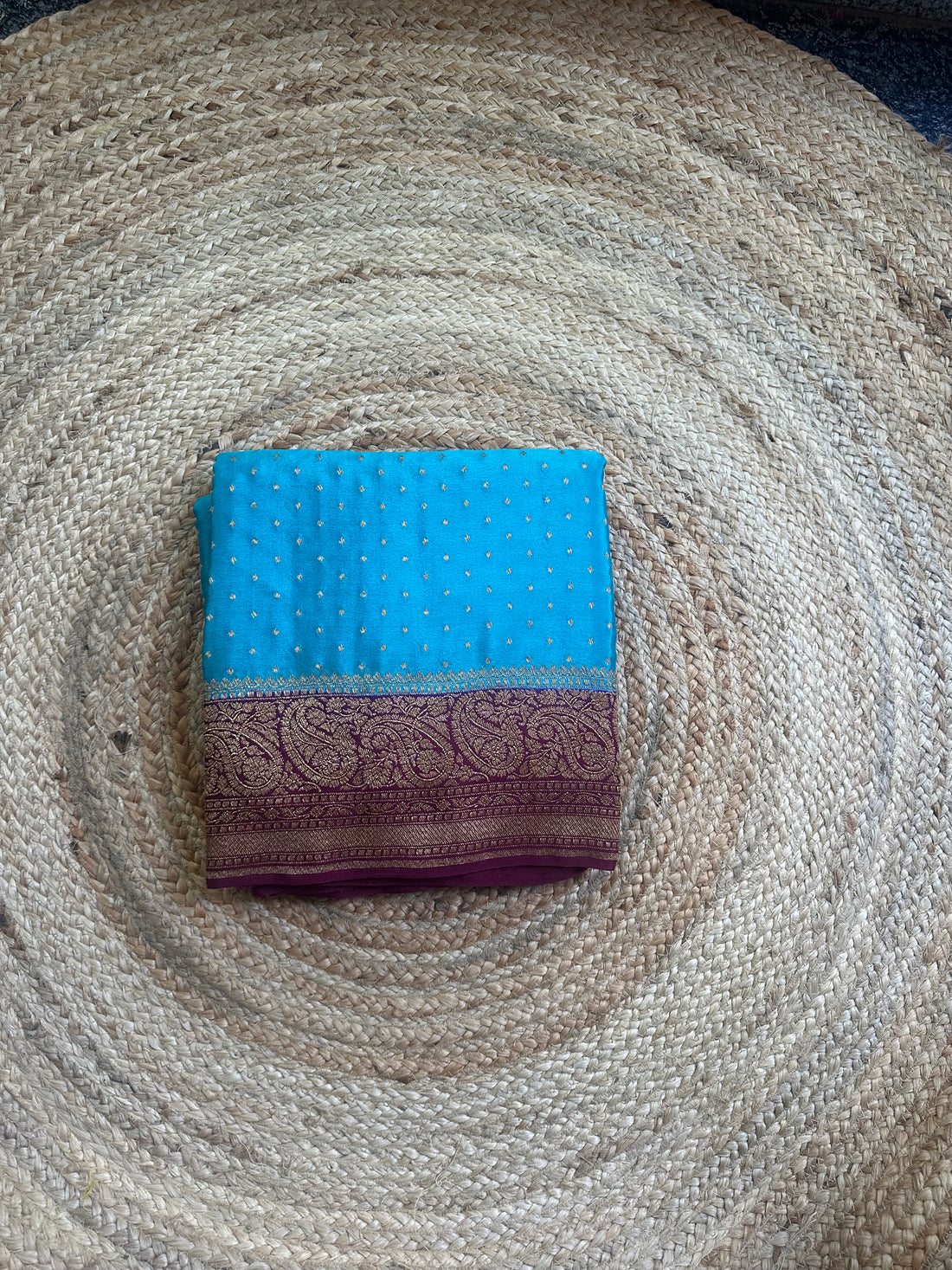 Blue with dark mejentha pure crepe Banaras silk sarees.