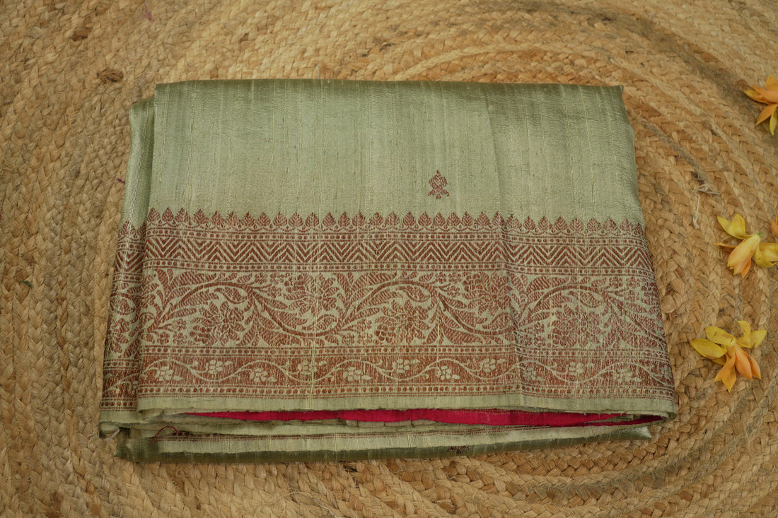 green pure raw silk saree
