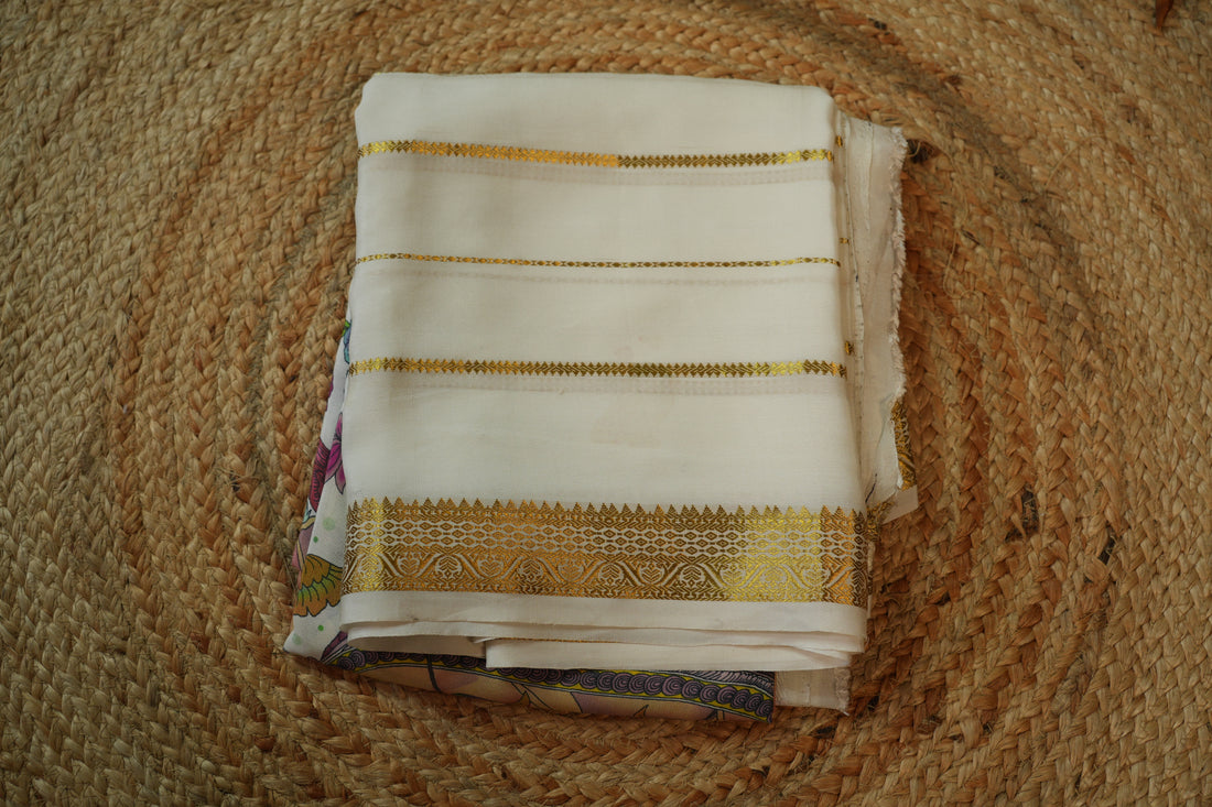 White central Kalamkari Pure Mysore Silk 120 gsm