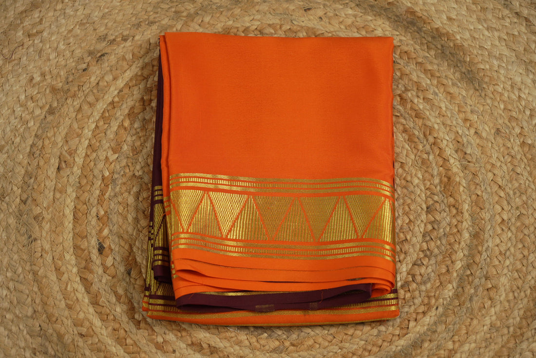 Orange and brown Pure Mysore silk crepe half and half 130gsm