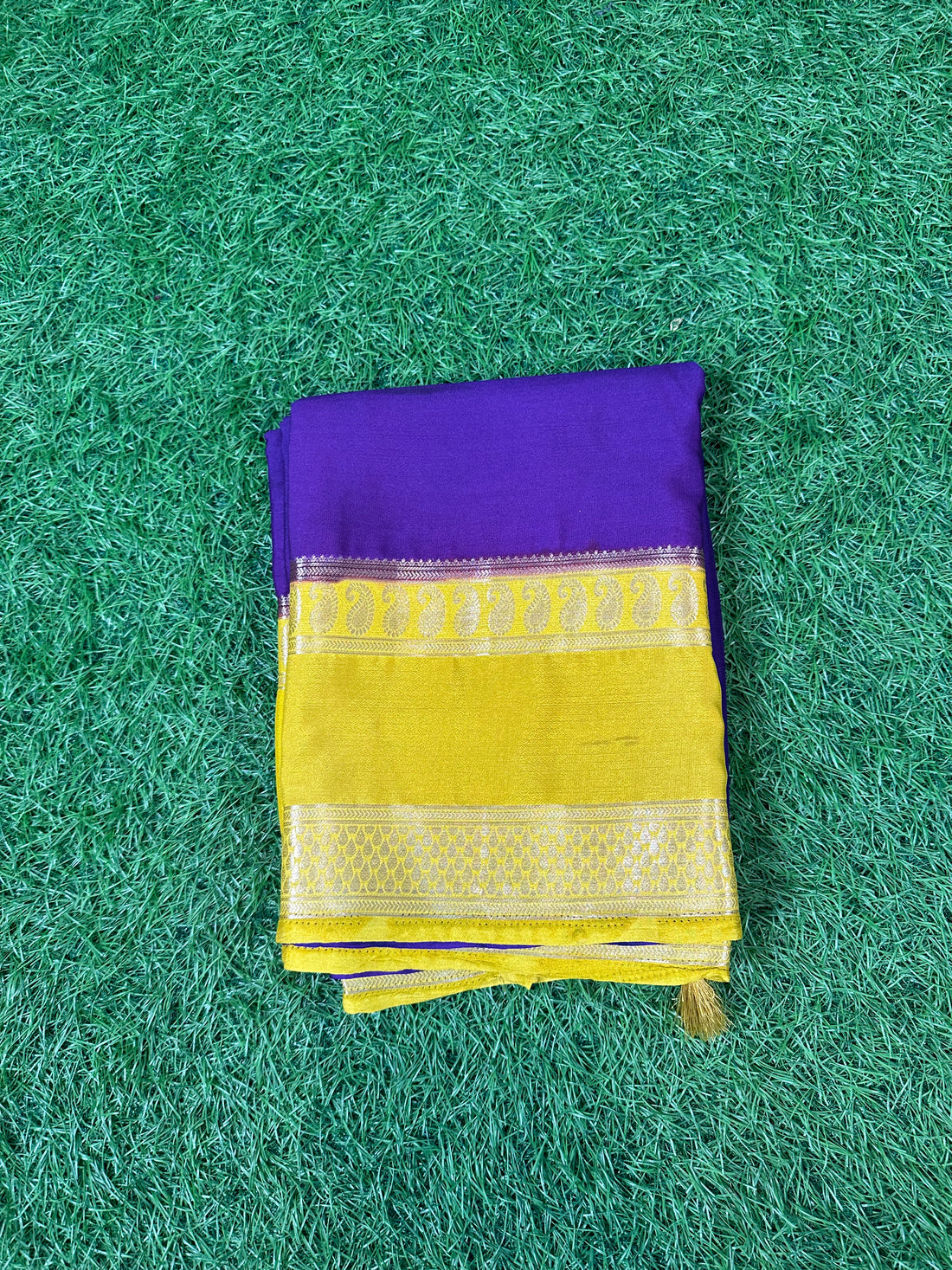 Purple and mustard Semi crepe Mysore Silk pattern