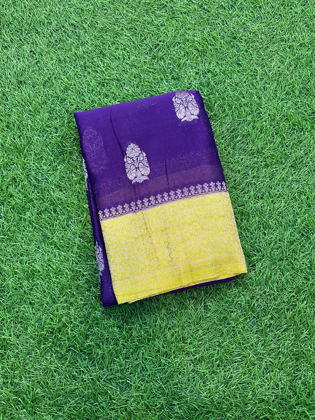 Purple and yellow soft crepe big butta