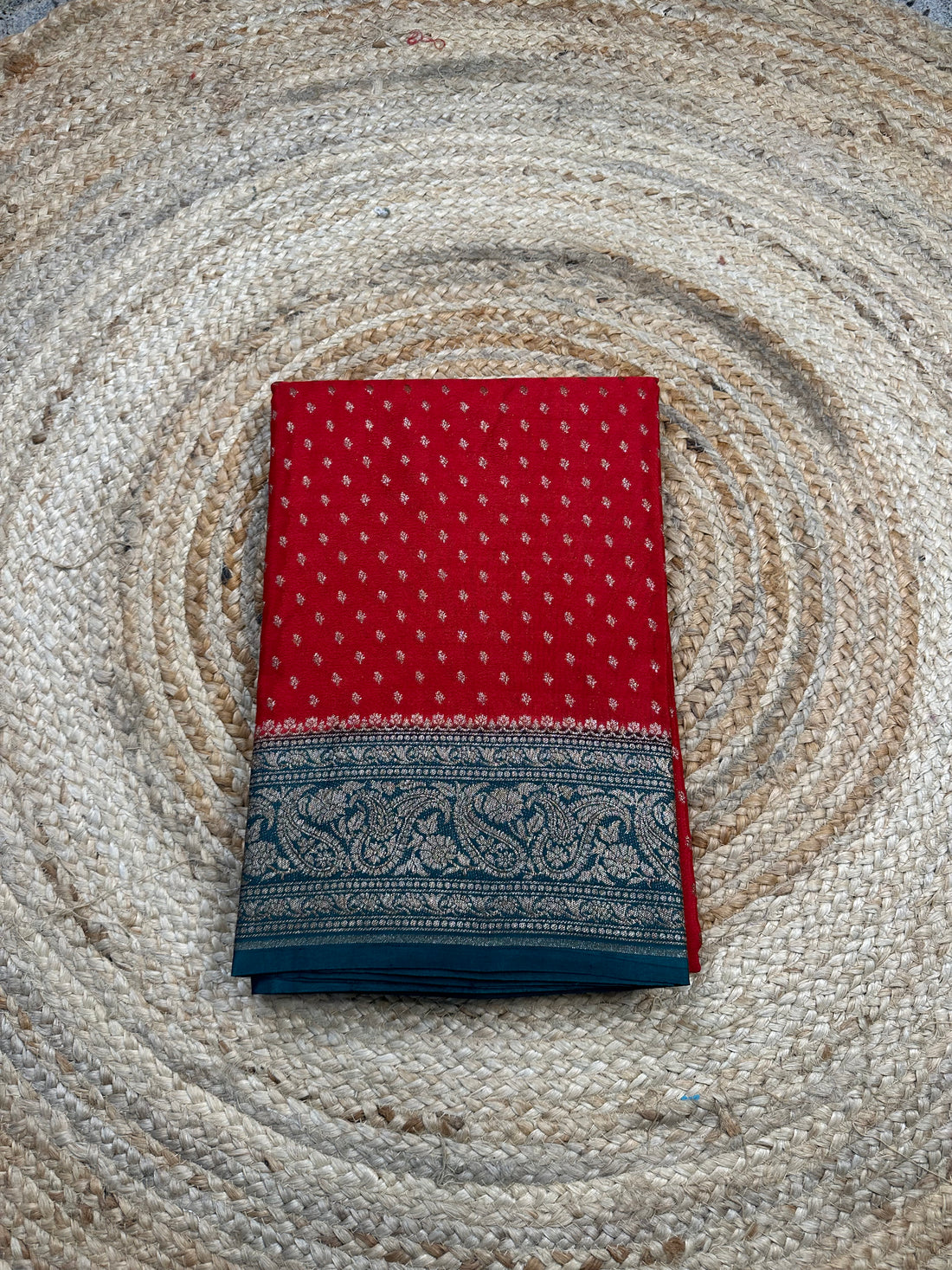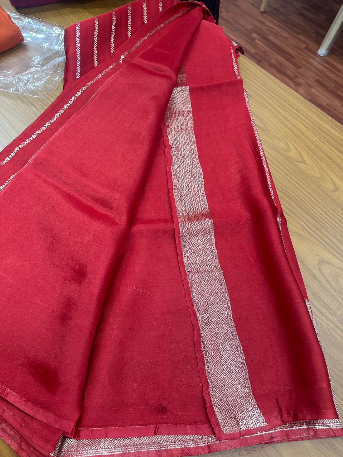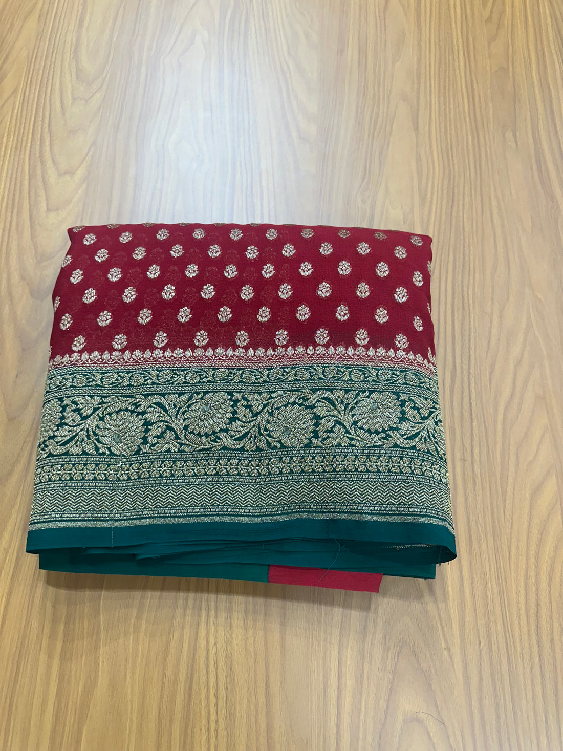 Maroon with pink pure crepe Mysore Silk sarees 110 gsm