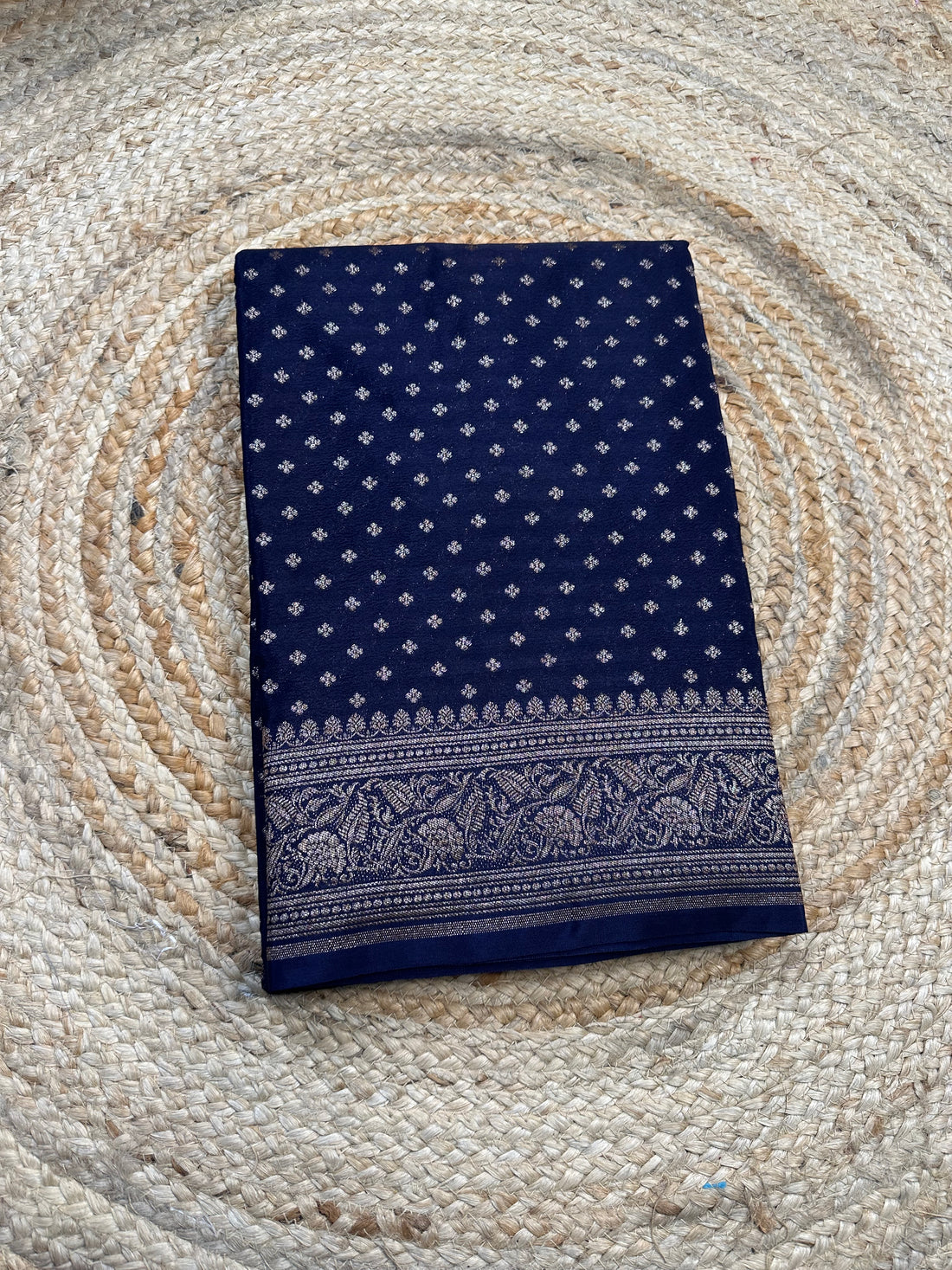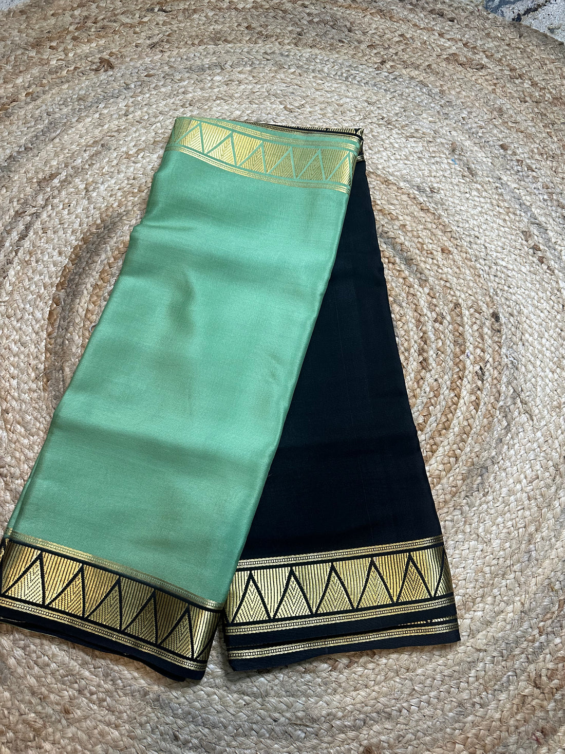 Gold and black pure Mysore Silk crepe 120 gsm half and half pattern.