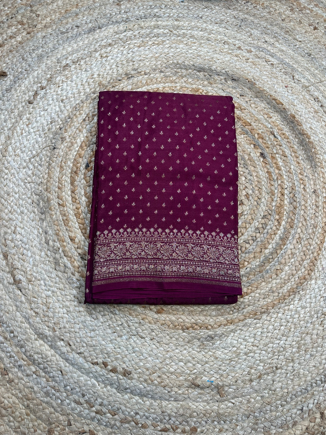 Maroon crepe chiffon with brocade blouse handloom silk.