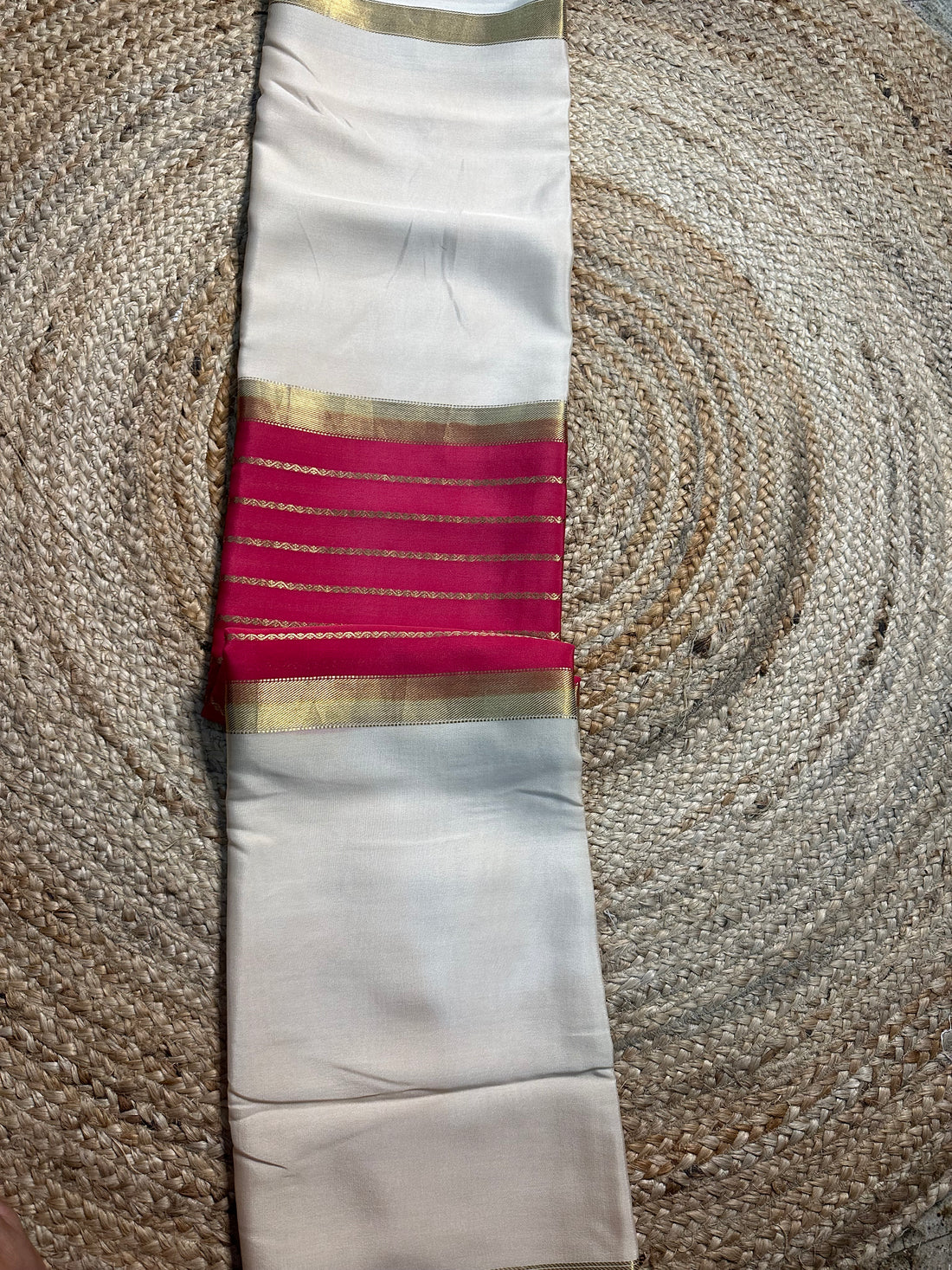 Pink and white central line pure Mysore Silk crepe 100 gsm
