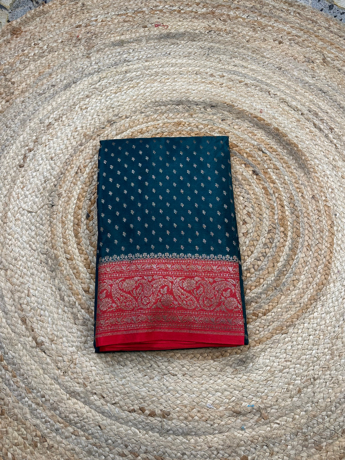 Black and red half and half pure Mysore Silk crepe. 120 gsm