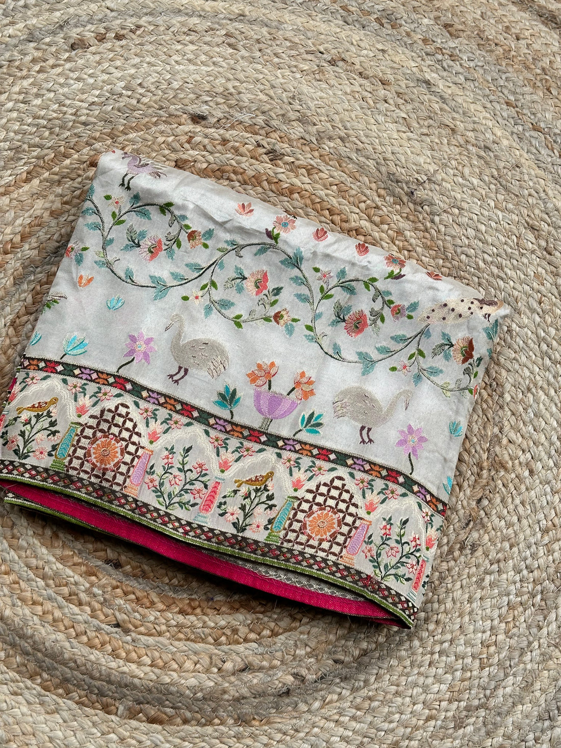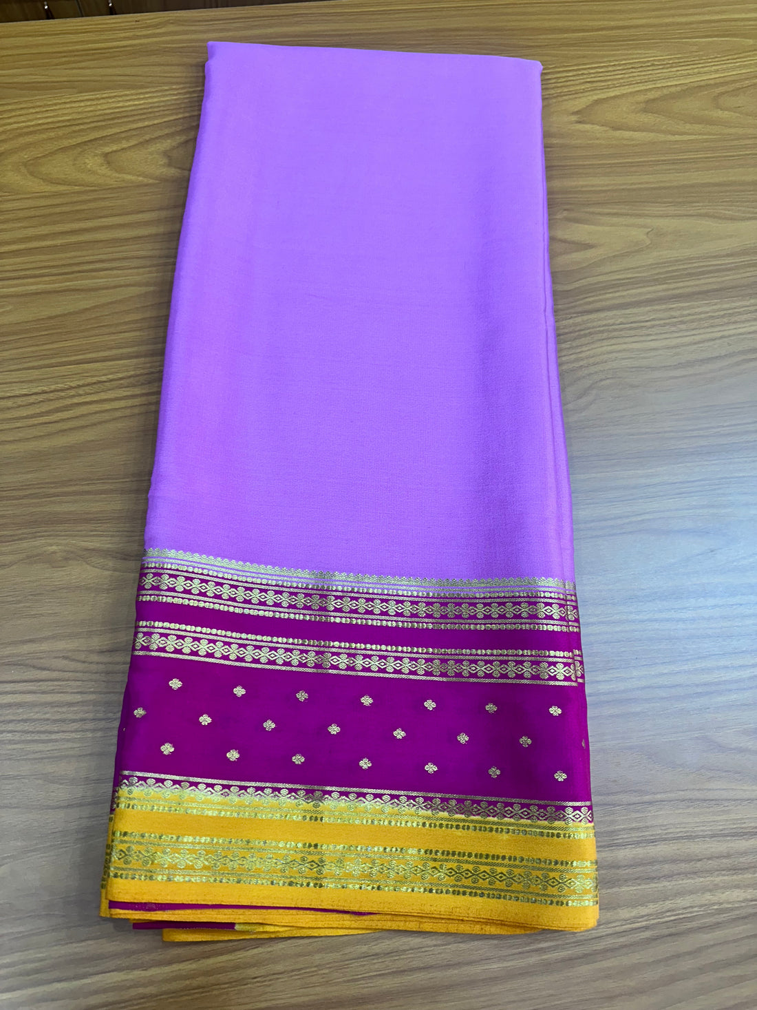 Lavender with pink pure crepe Mysore Silk 120 gsm