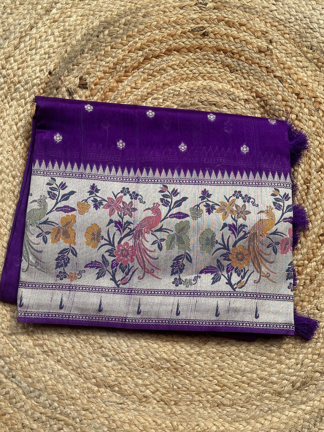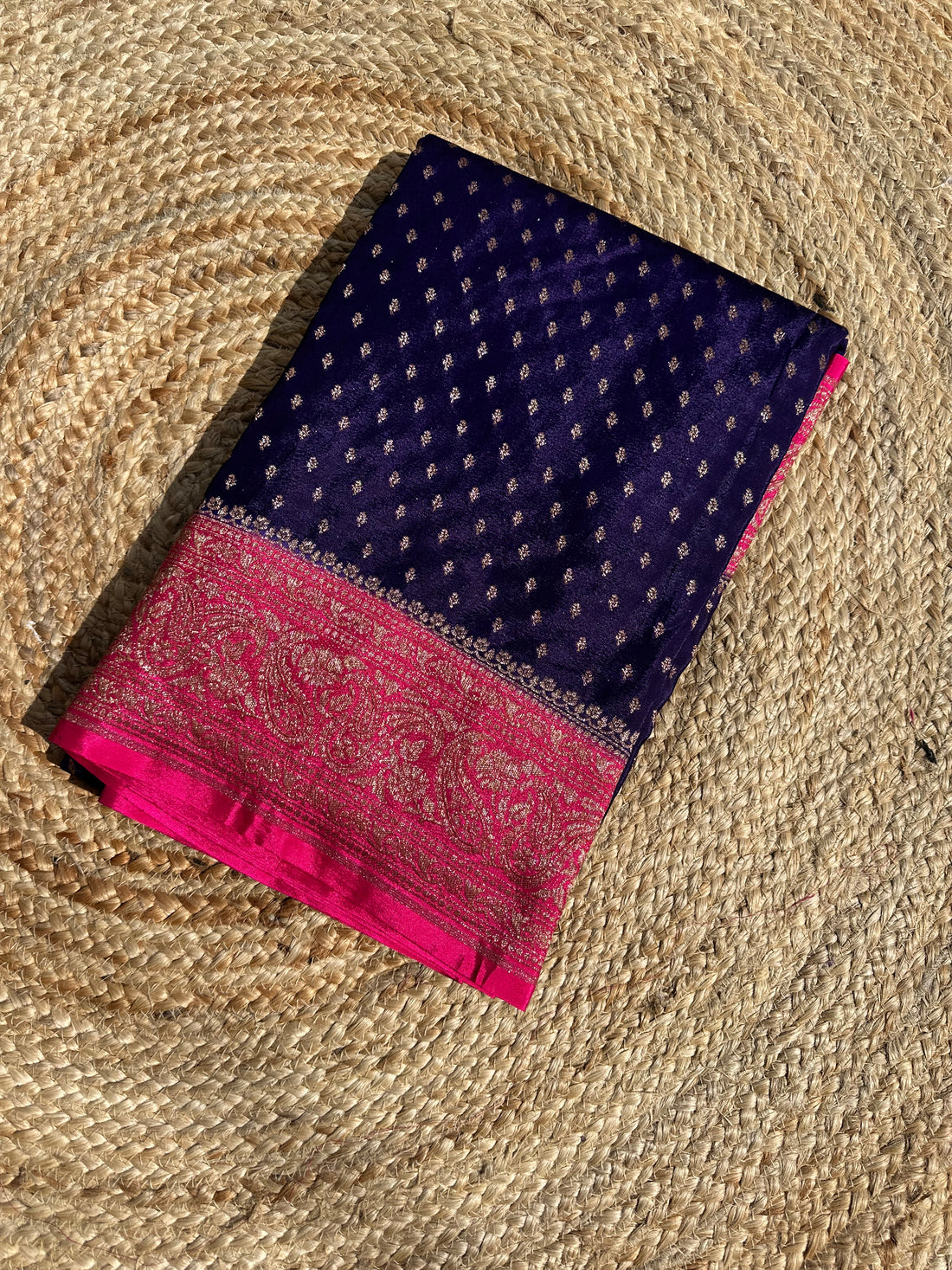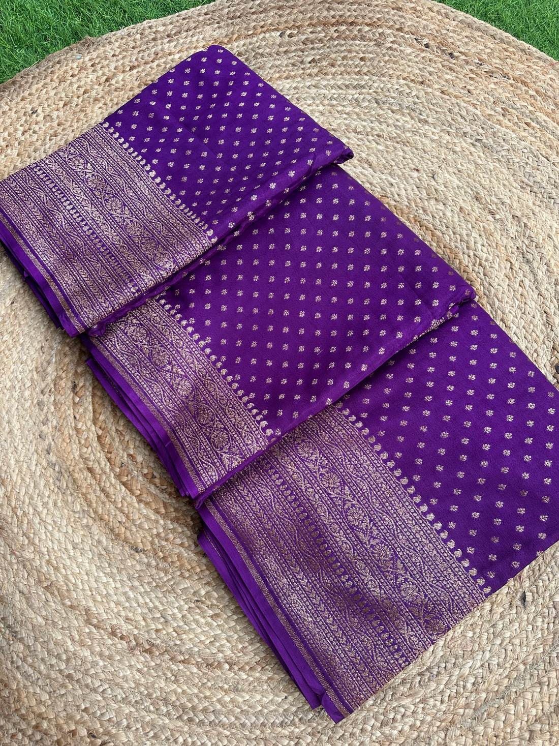 Purple and sea blue Pure crepe chiffon sarees with brocade blouse