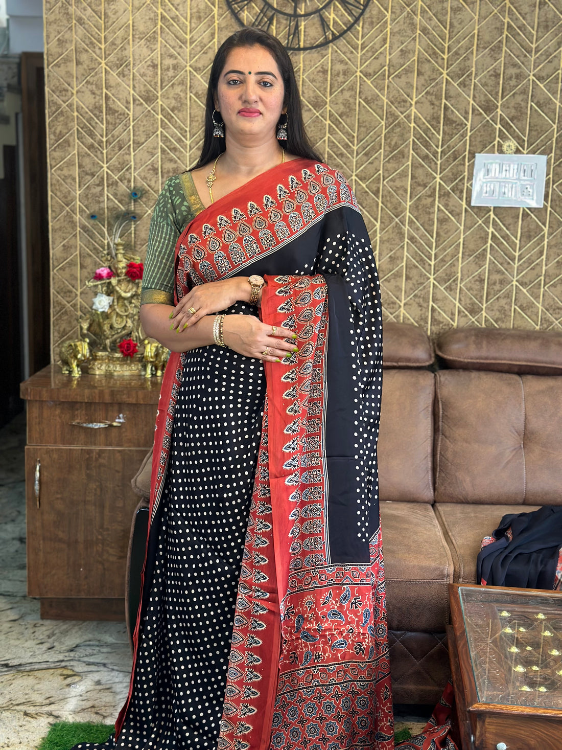 Experience the elegance and sophistication of our Black with Blue Pure Khadi Chiffon Saree. Made...