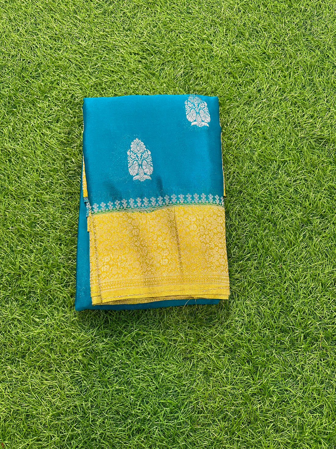 This Blue pure zari woven Benaras georgette saree with zari woven butta running all over the saree and...