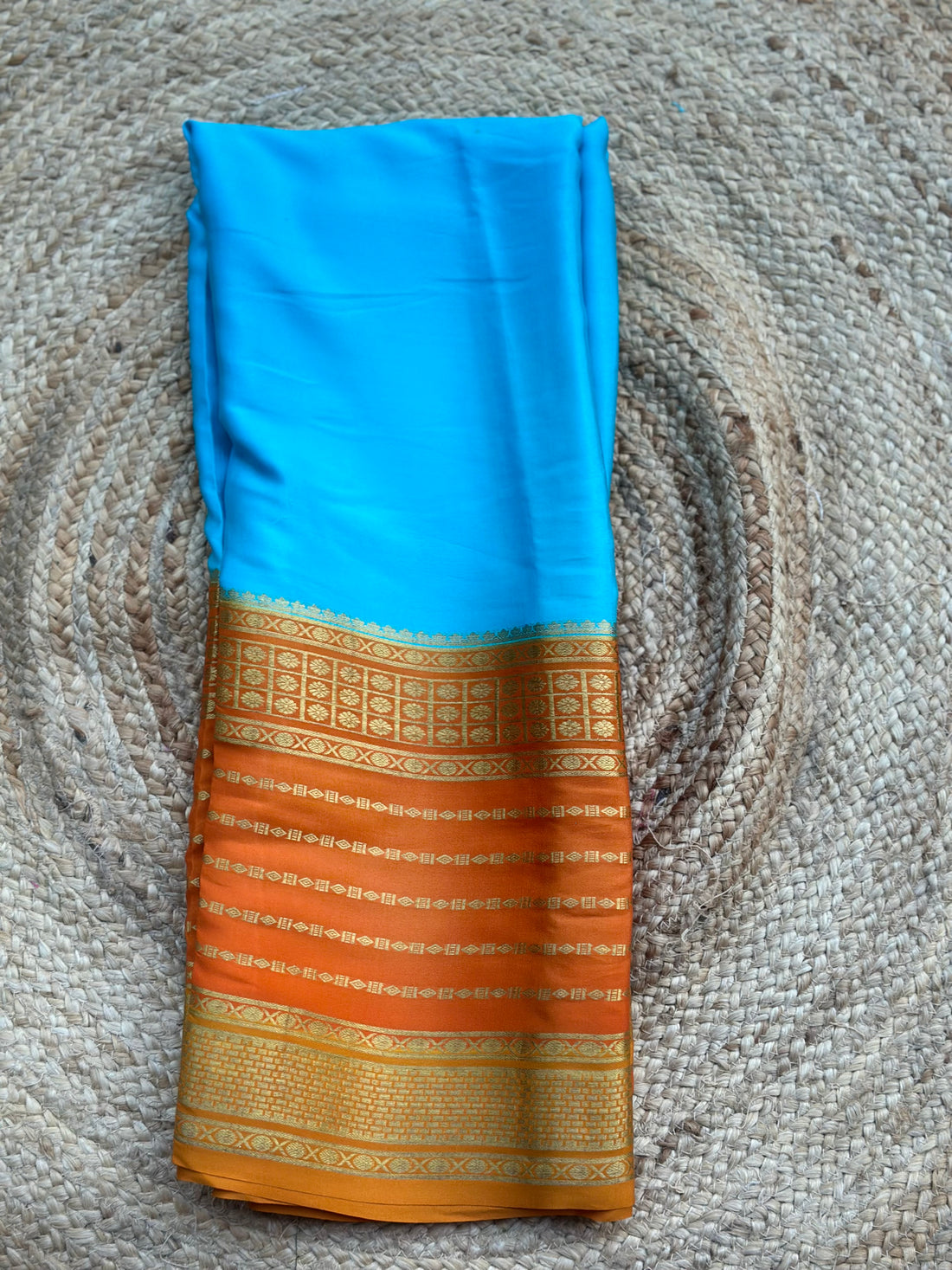 Blue with orange pure crepe Mysore Silk sarees 120 gsm