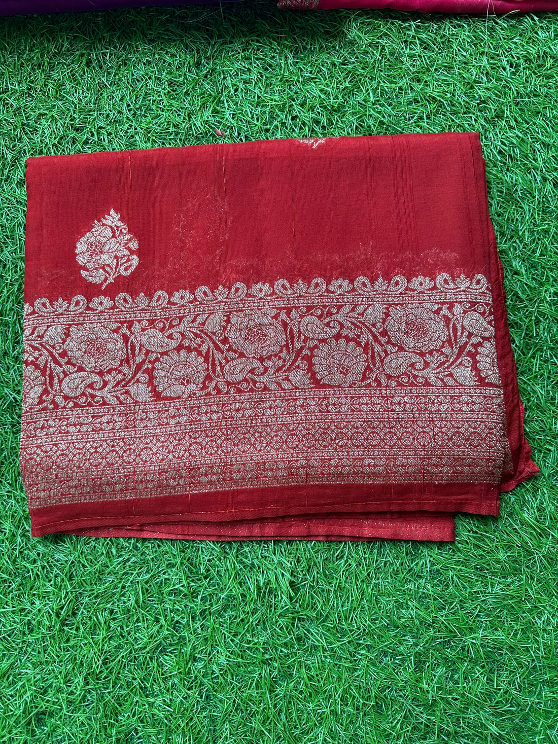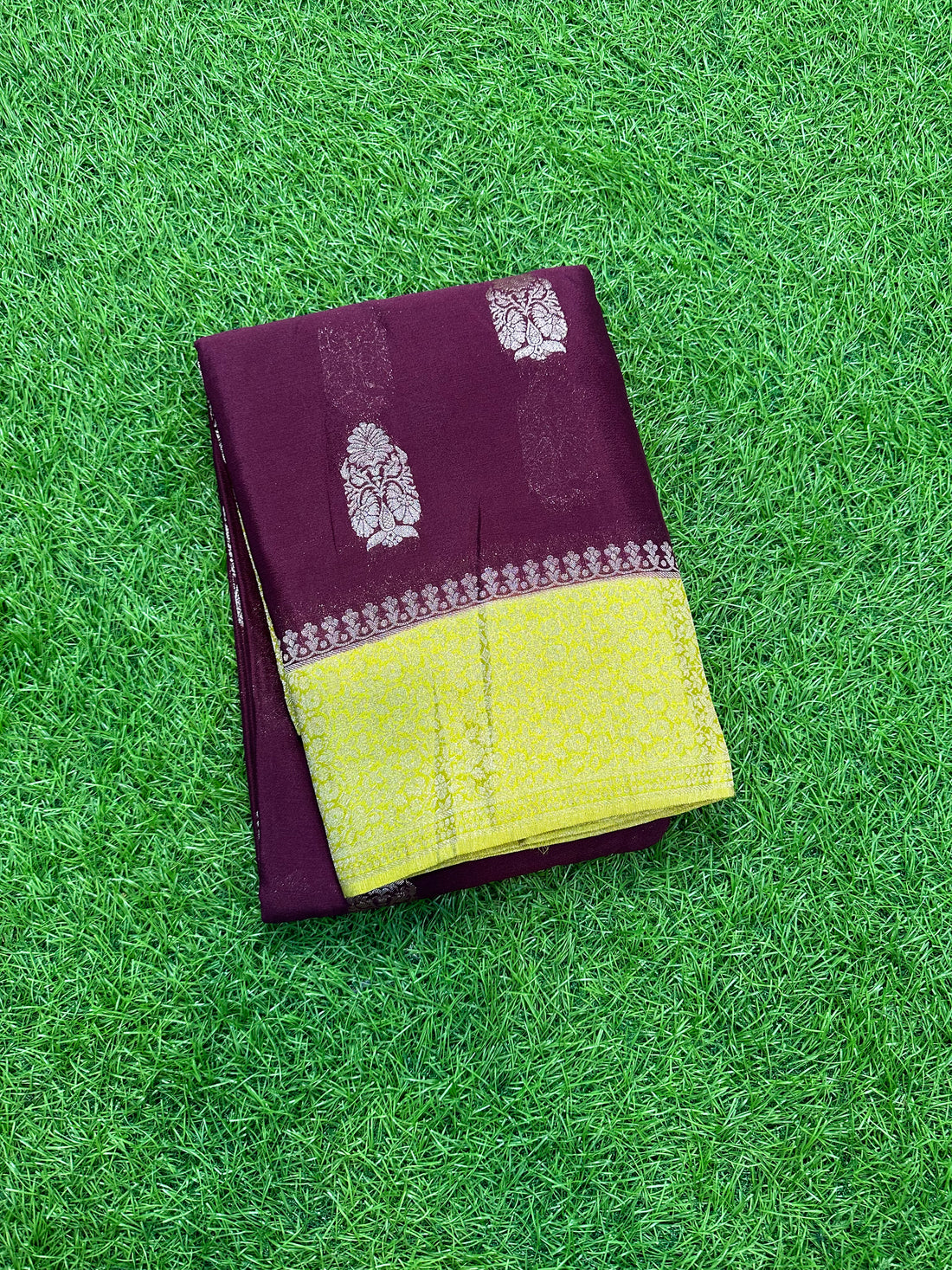 Brinjal colours with green Pure crepe Banaras silk sarees