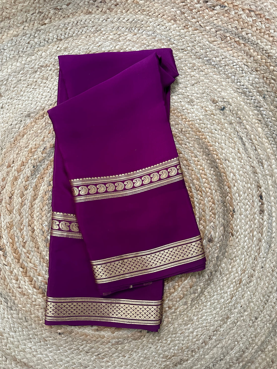 Dark mejentha with mango bentex border pure crepe Mysore Silk sarees 120 gsm.