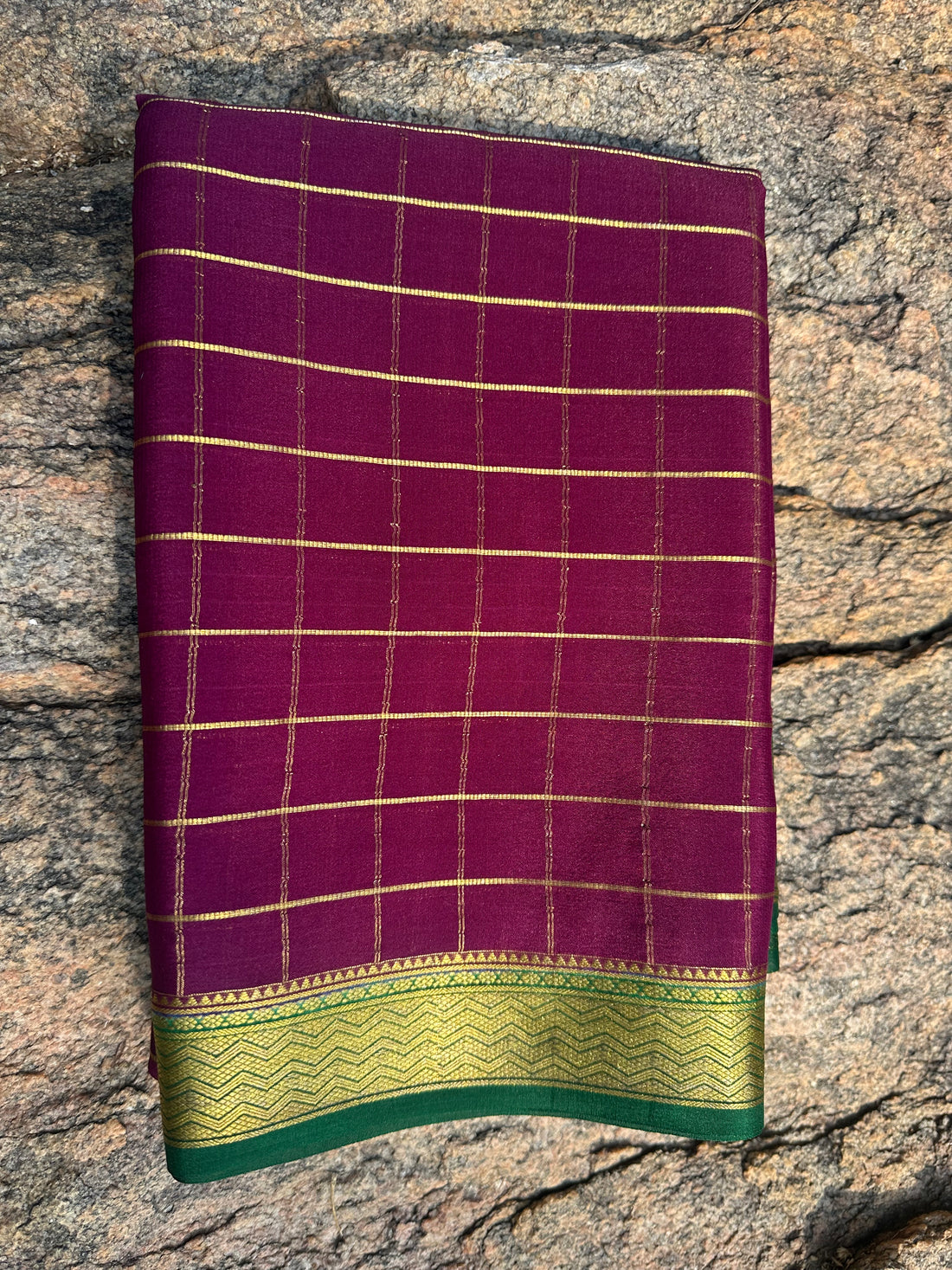Dark wine tusser with Paithani border.
