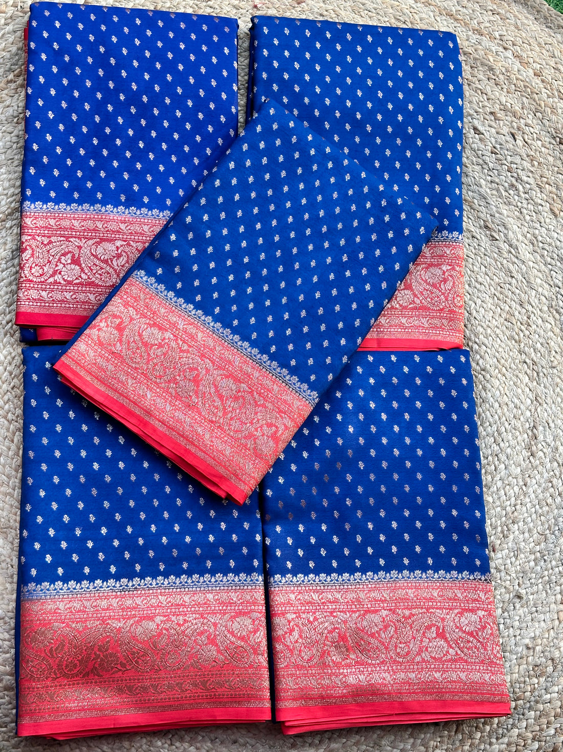 Deep blue and red Banarasi crepe chiffon