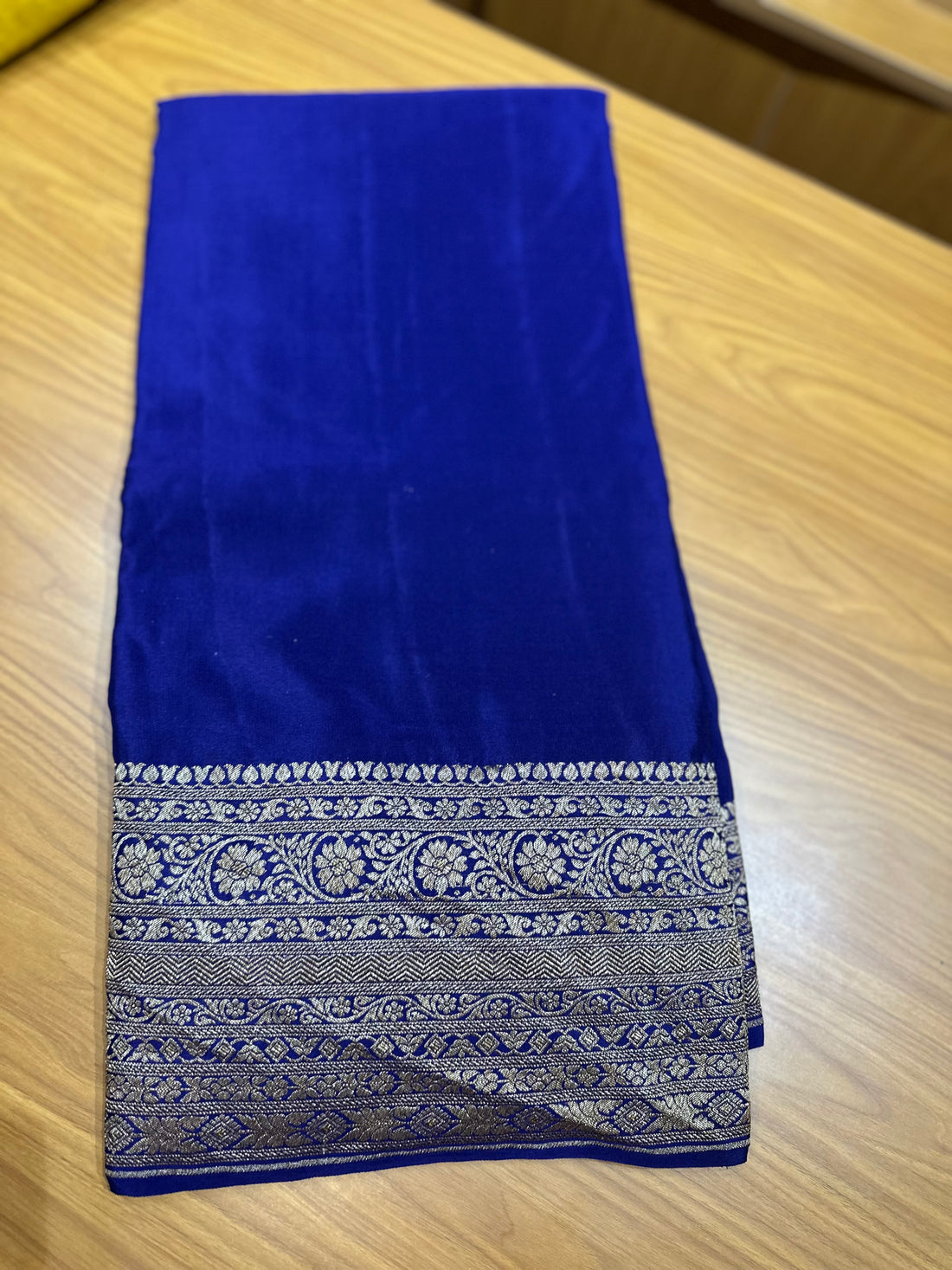 Deep blue pure crepe Banaras silk sarees with brocade blouse