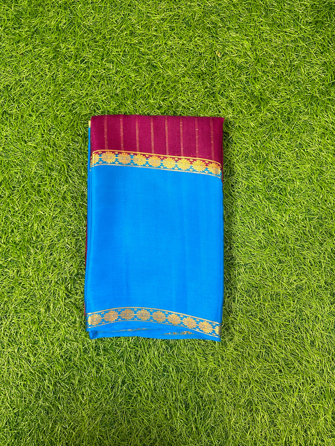 Maroon with blue pure wrinkle crepe with vertical stripes blouse.