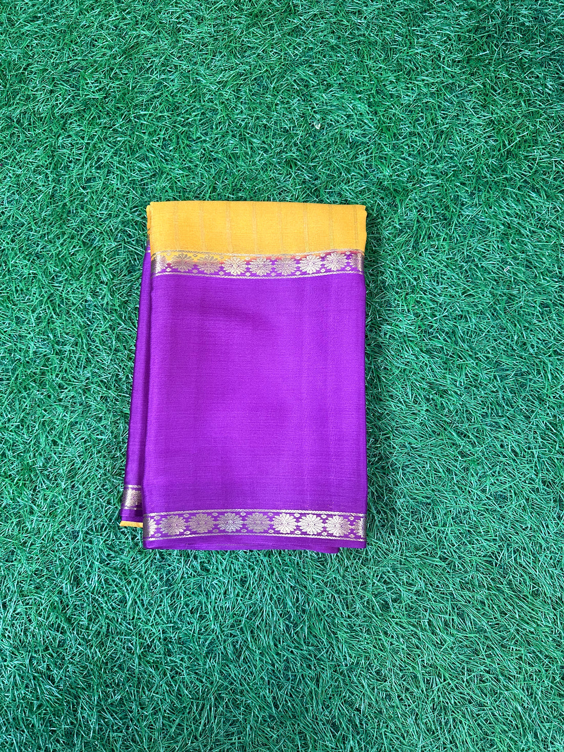 Mustard with mejentha pure wrinkle crepe saree , vertical stripes blouse.