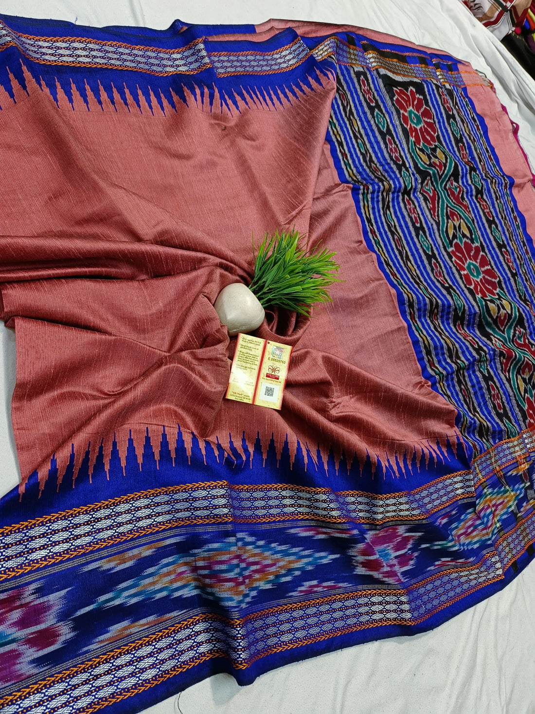 Pure Raw silk, onion pink with royal blue.
