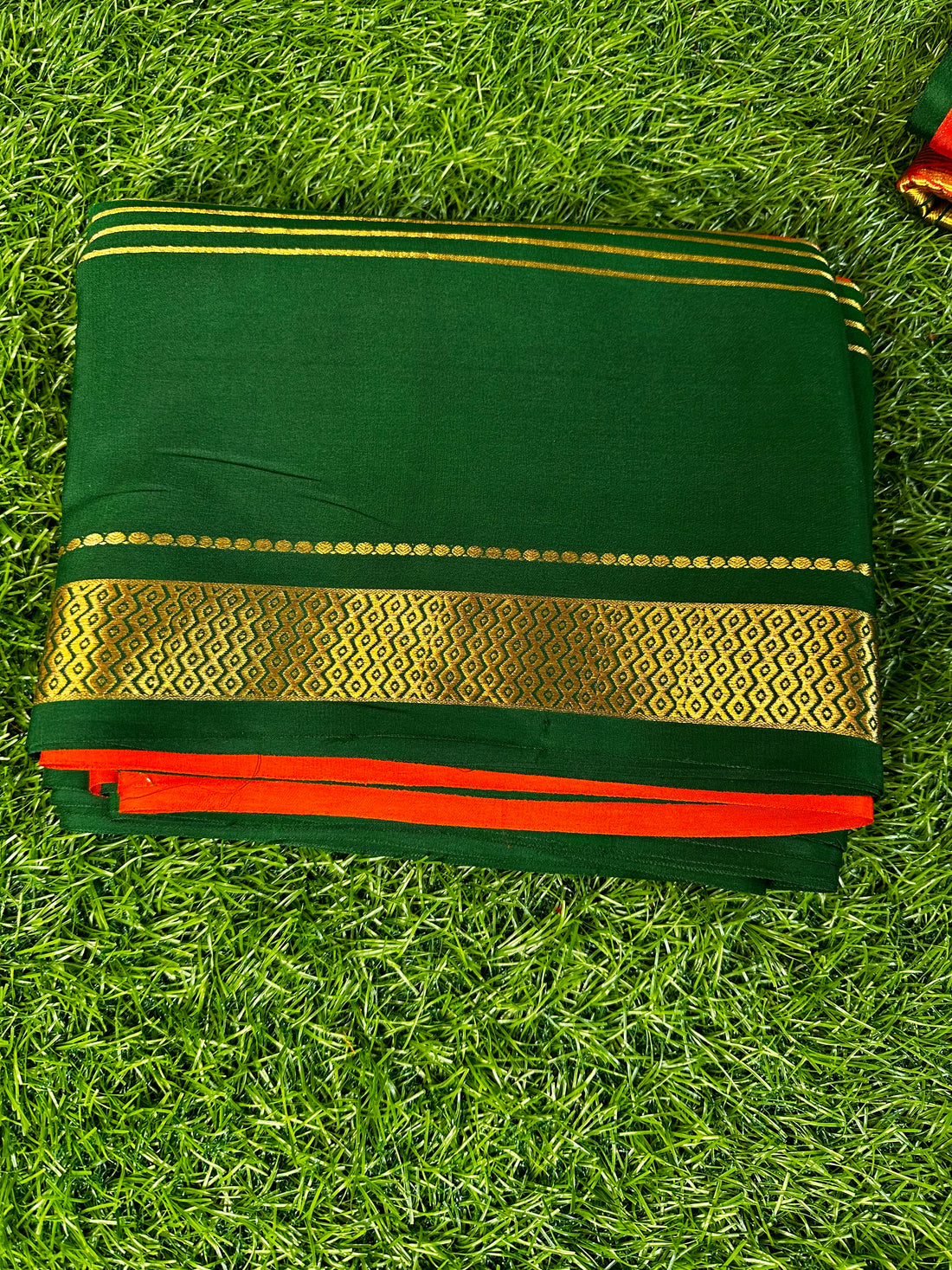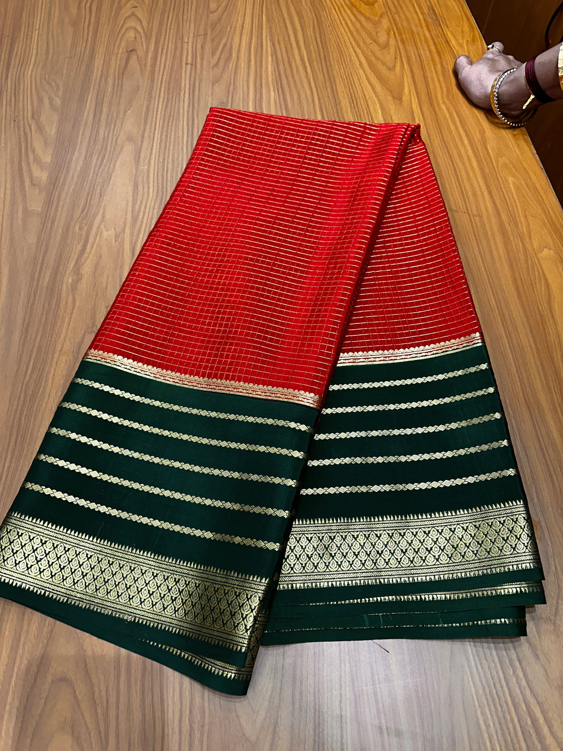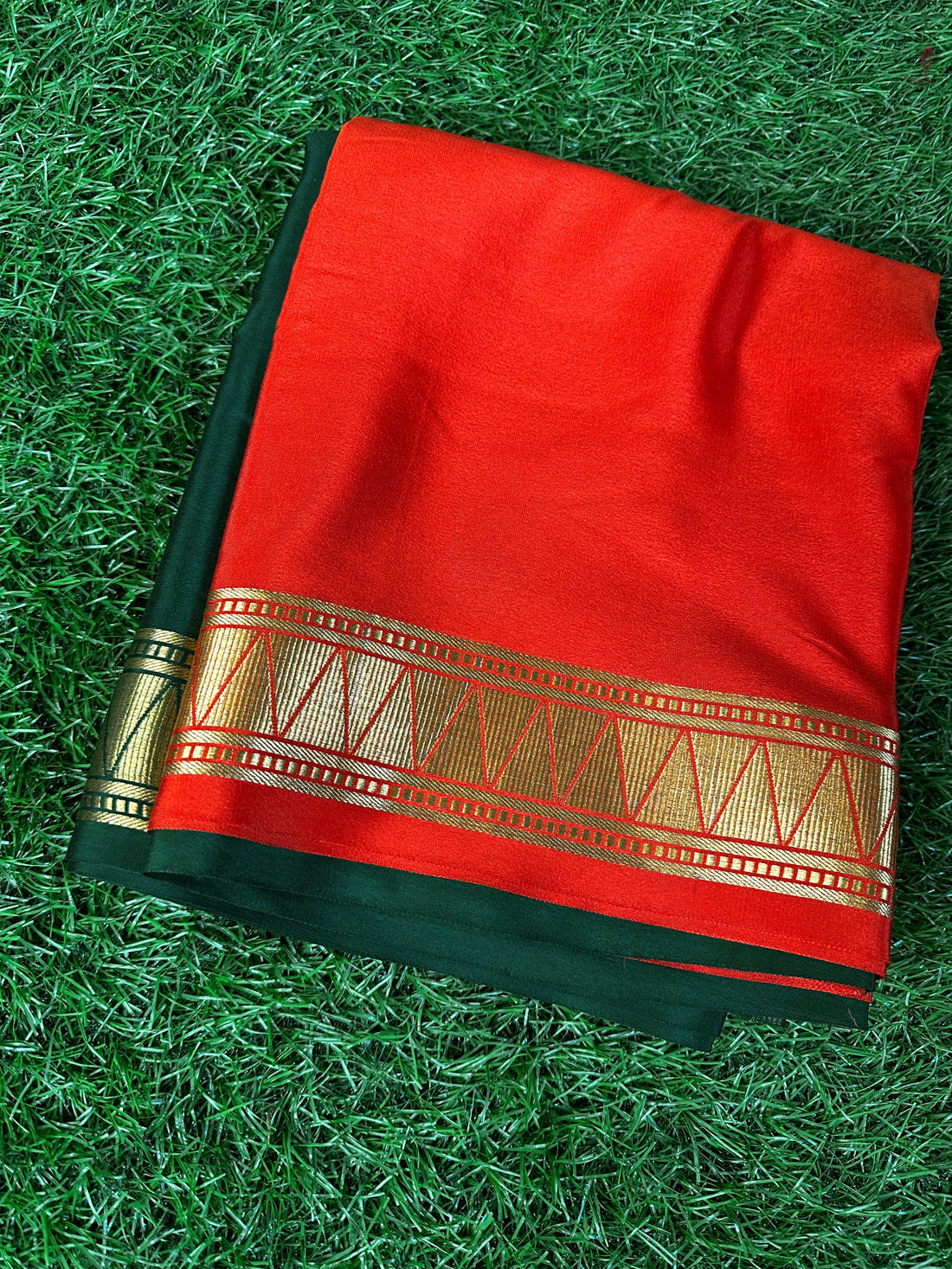 Pure Mysore silk crepe Red with green