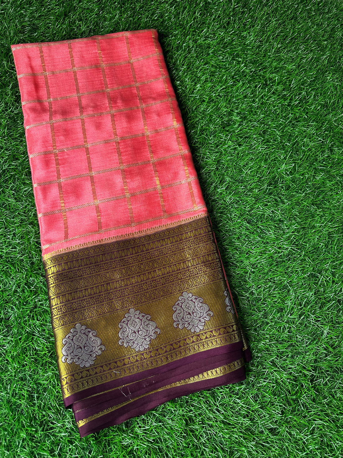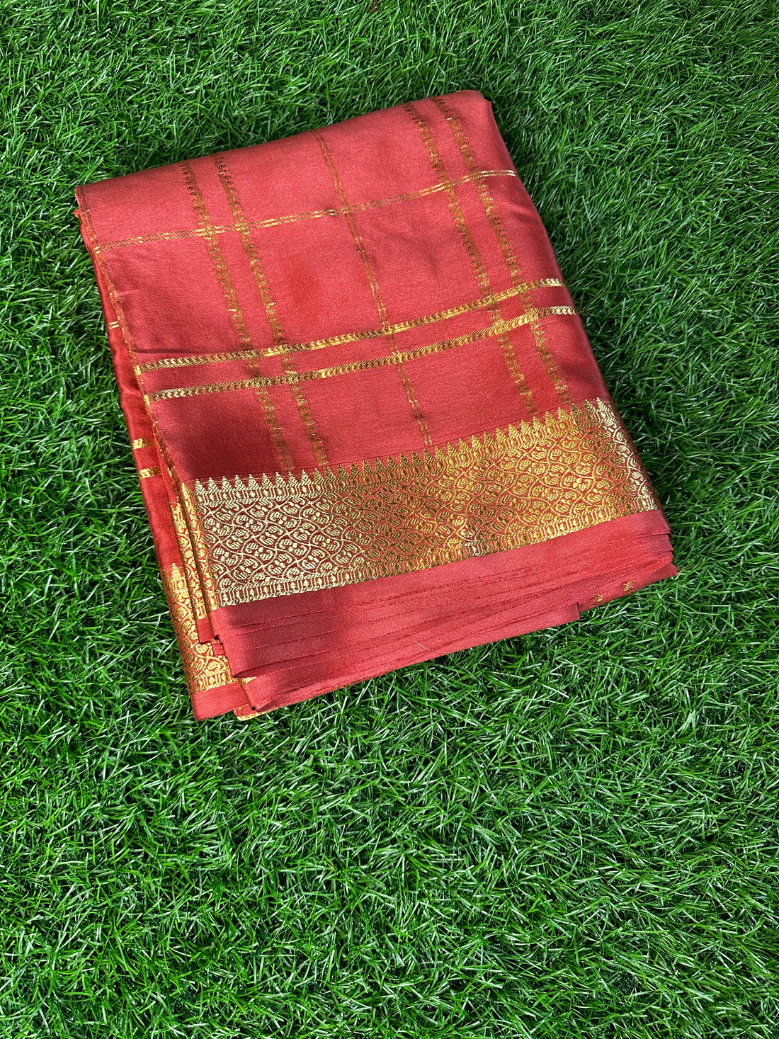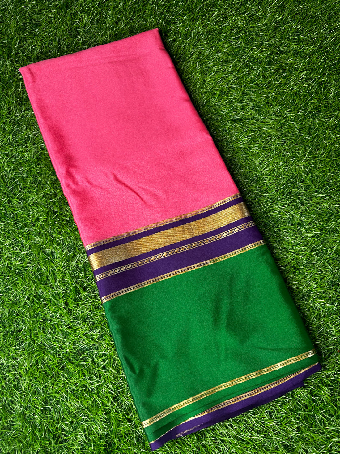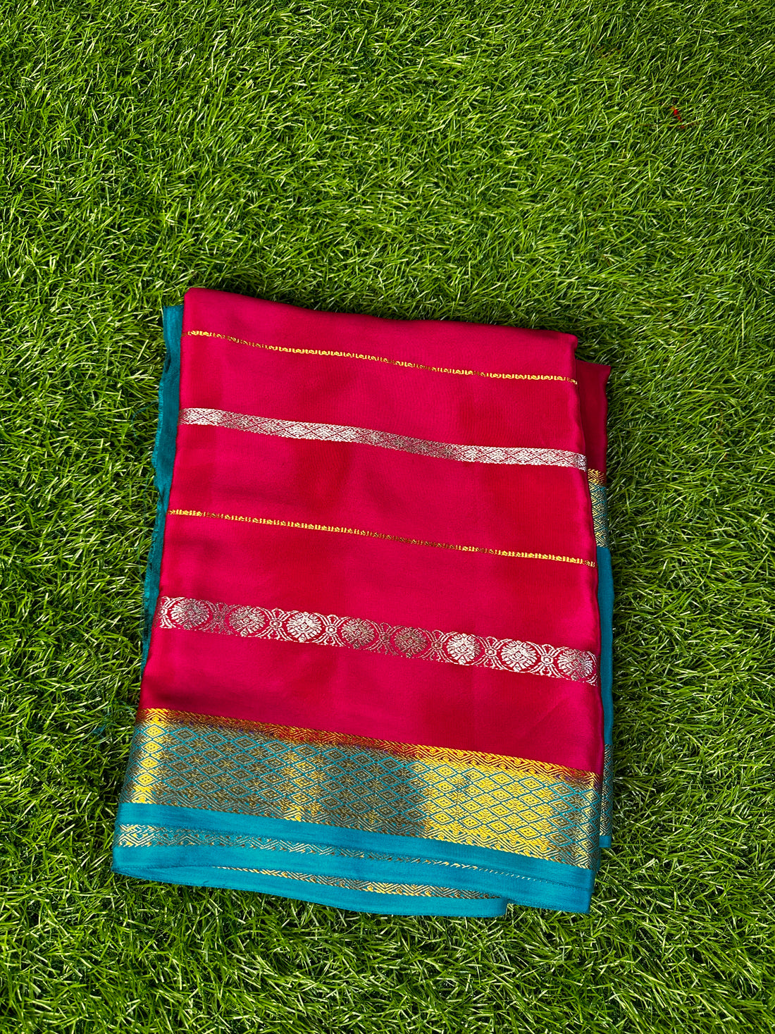 Pure Mysore silk crepe Red with green