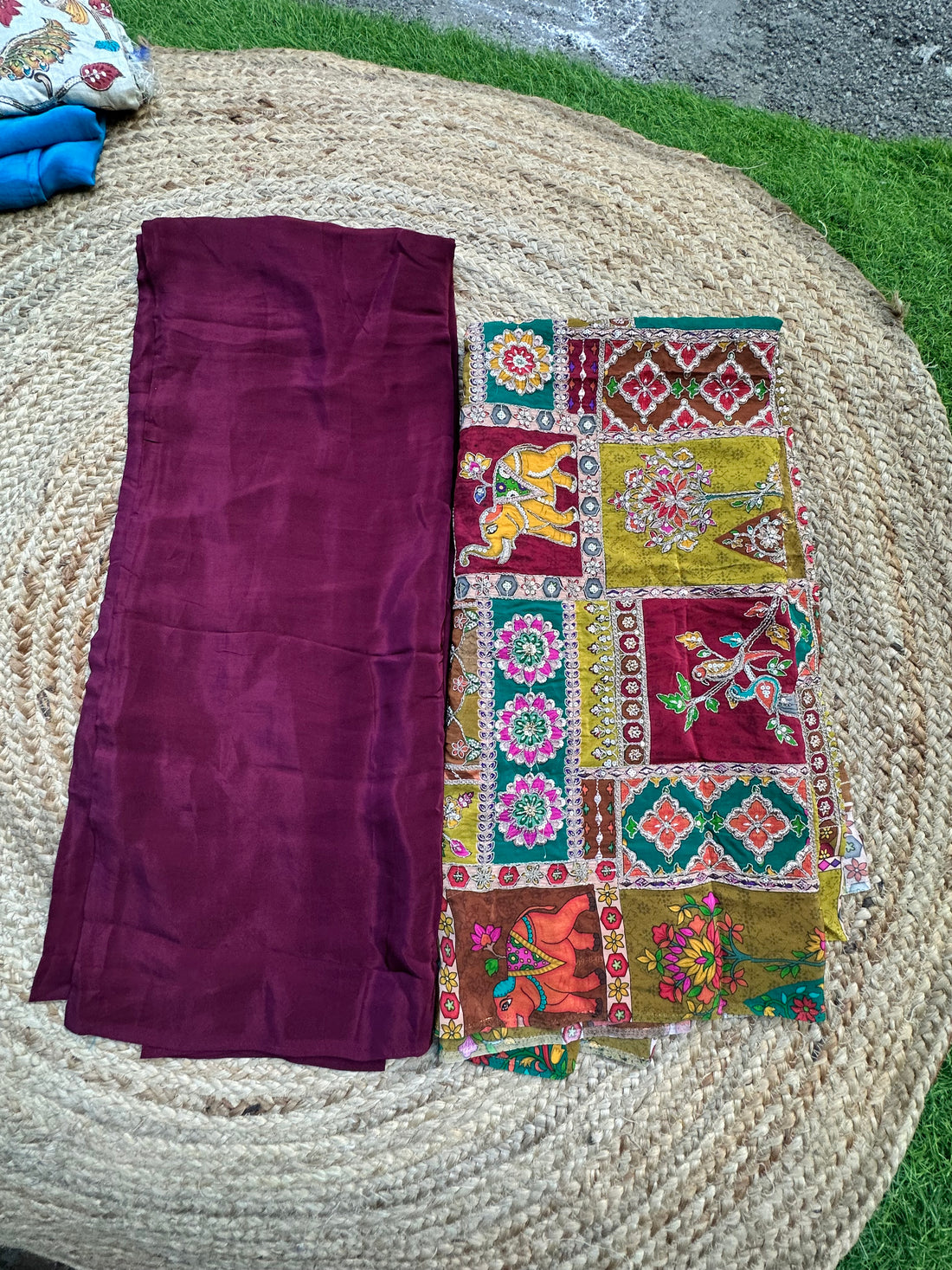 Dark blue with grey kalamkari crepe sarees.