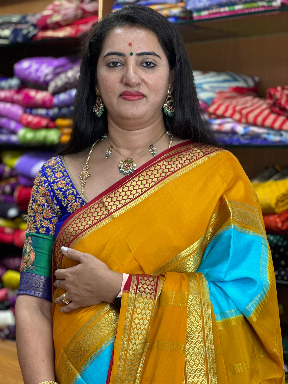 Teal blue with mustard bentex border 120 gsm