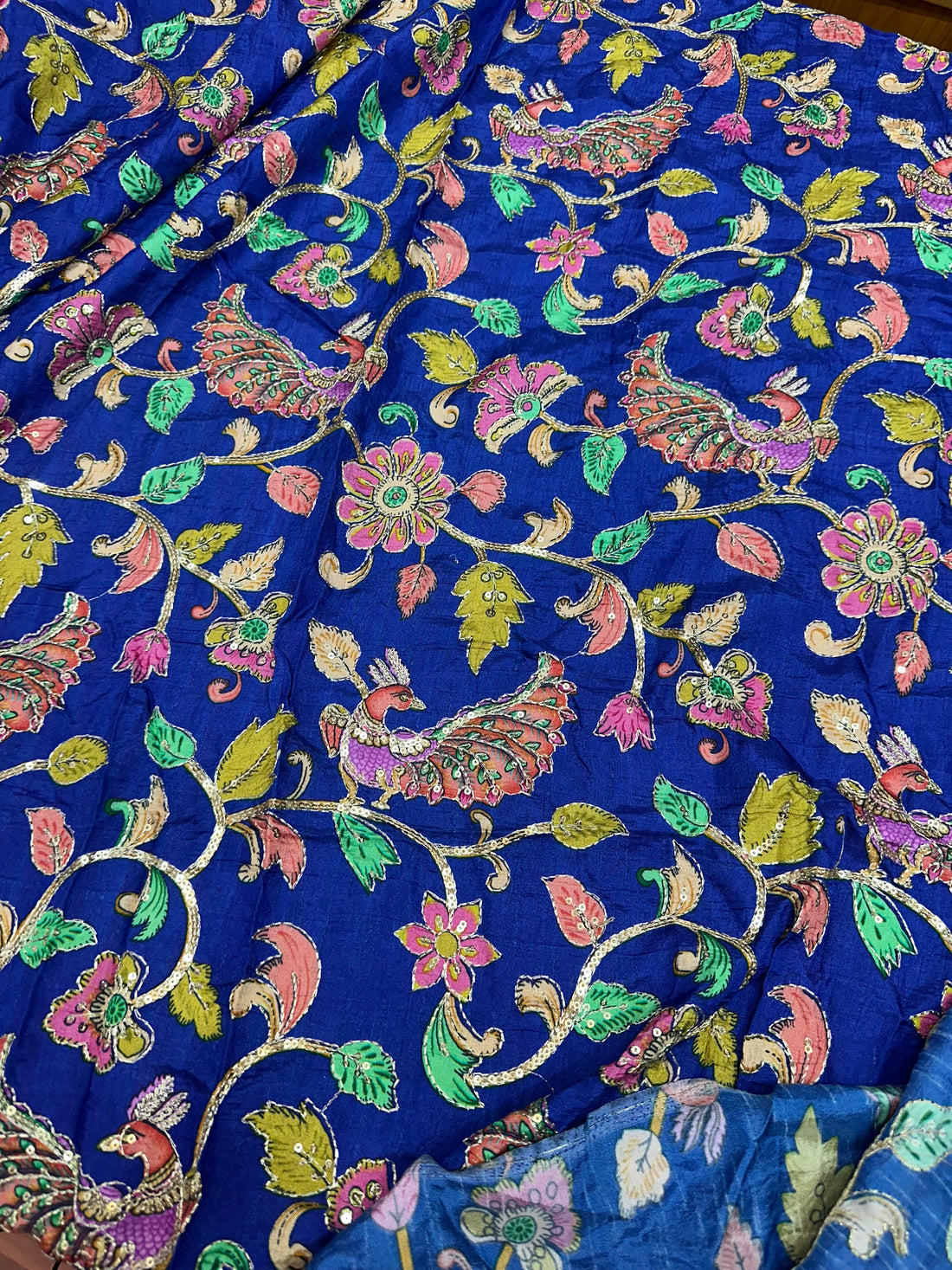 Deep blue Pure crepe kalamkari blouse material 1 mtr