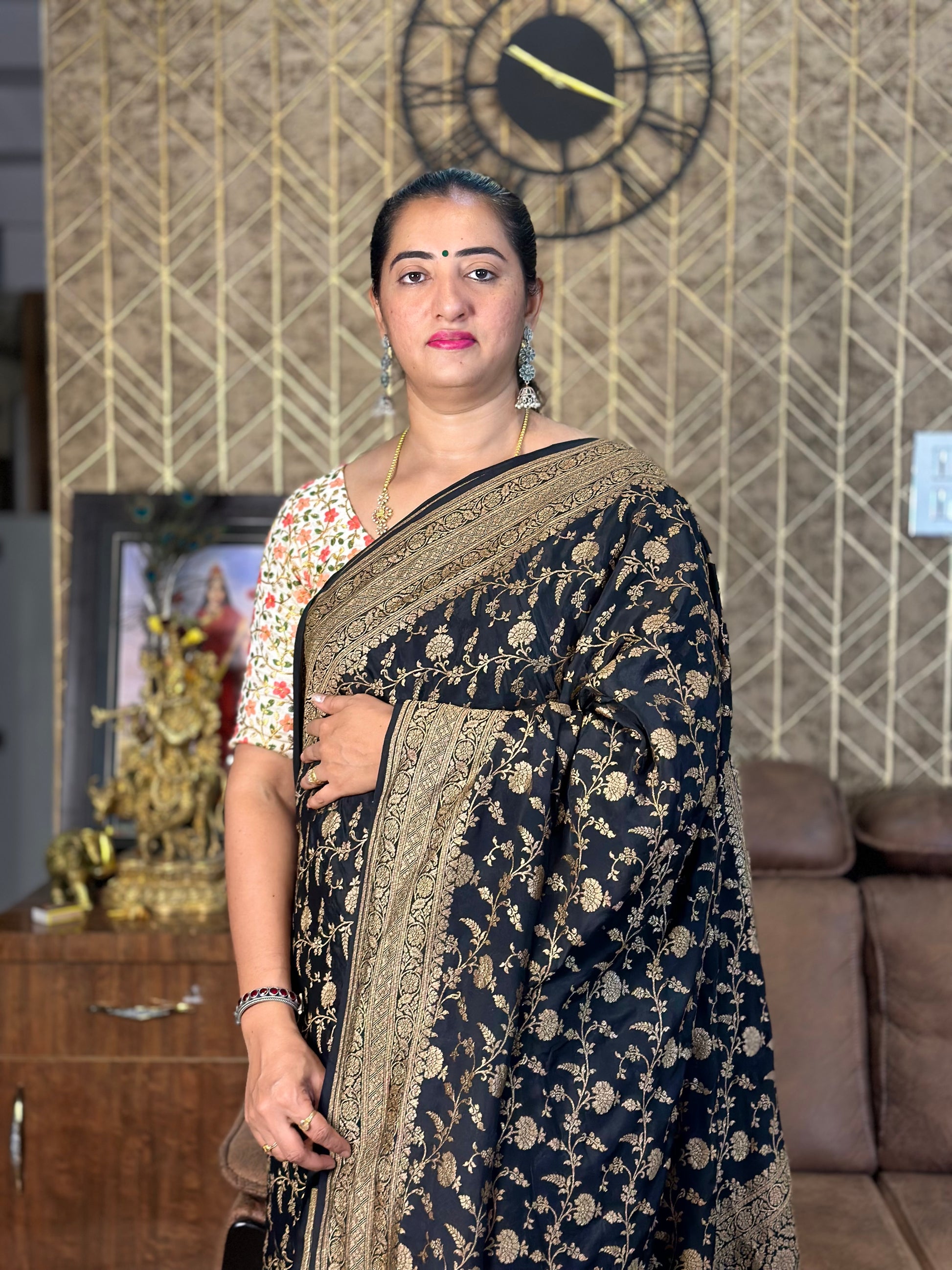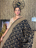 Black jaal pure crepe Banaras silk sarees. With butta blouse