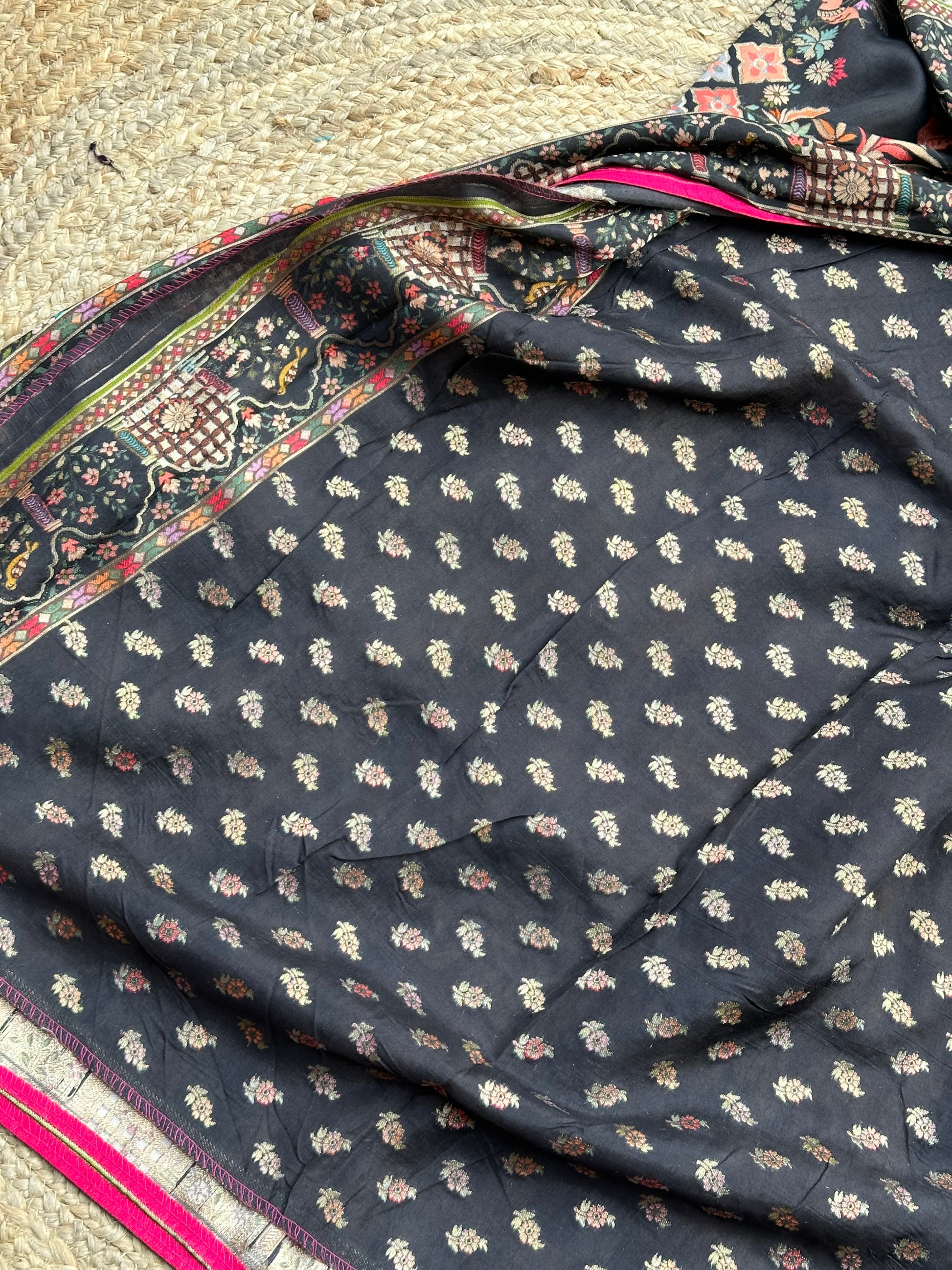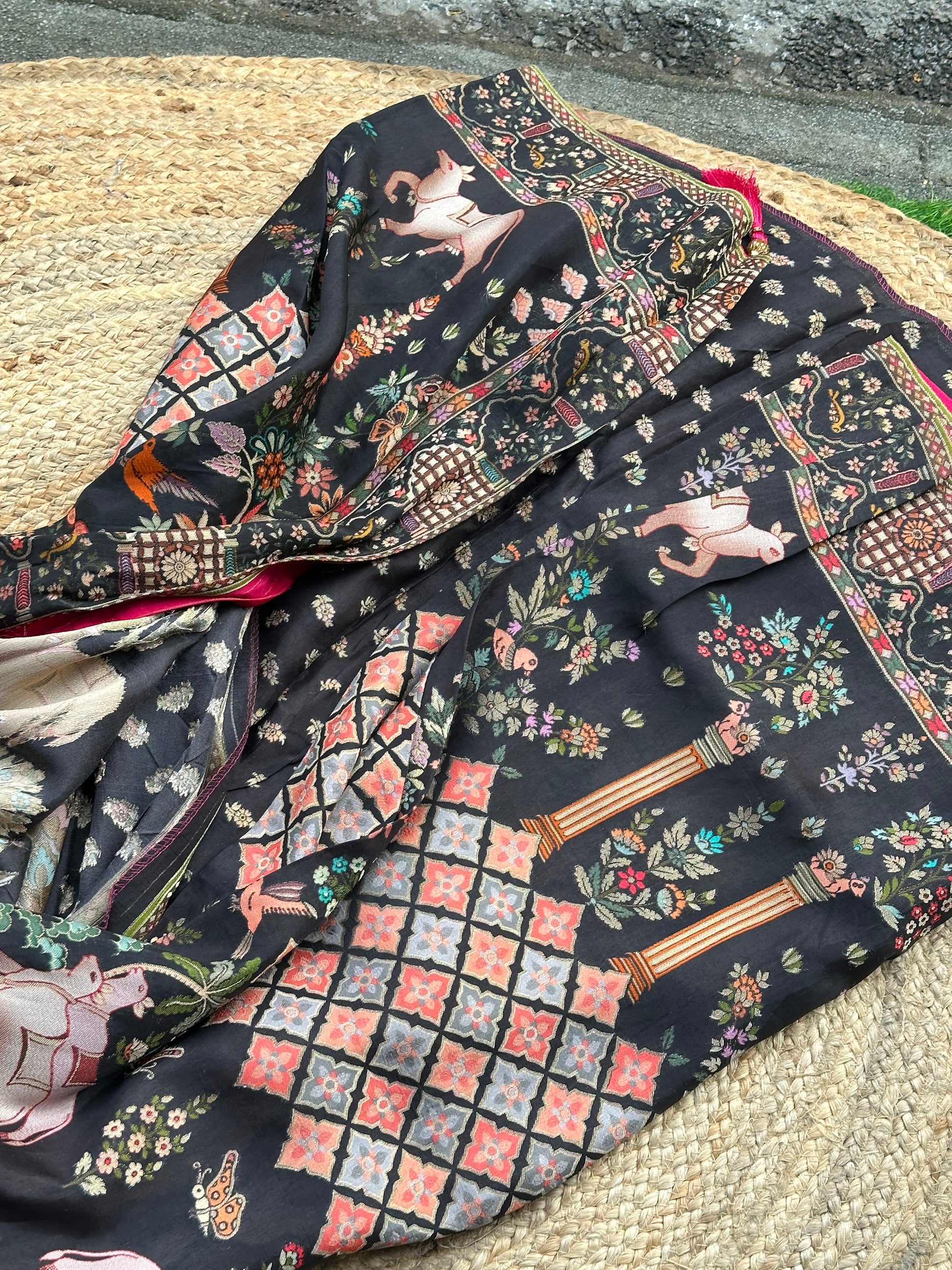 Black pure moonga pashmina weaving saree