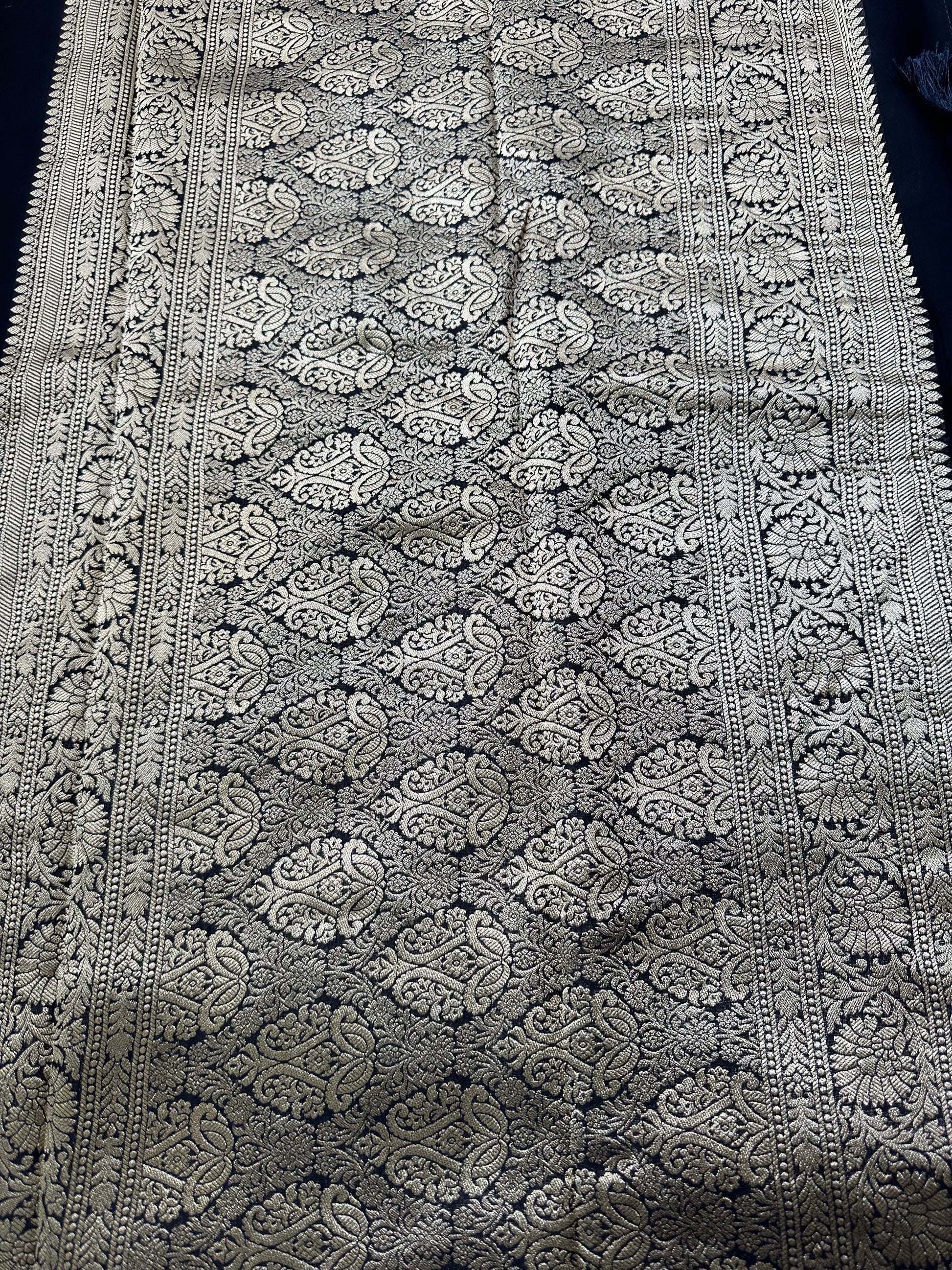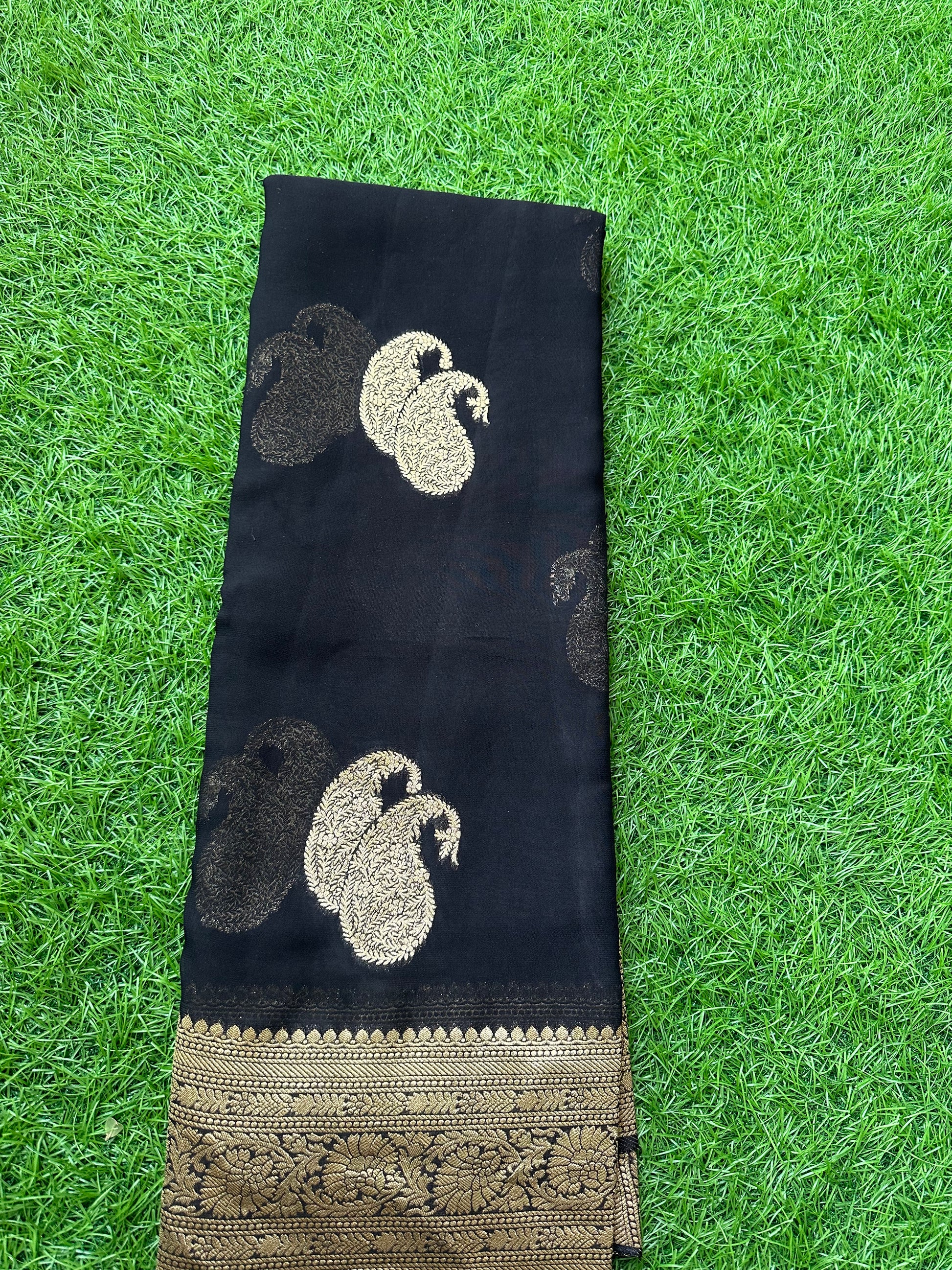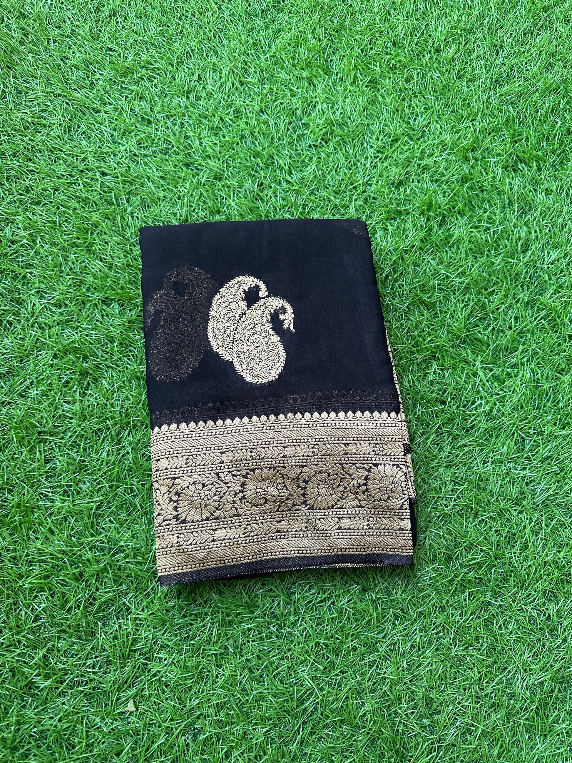 Black pure viscose georgette with mango motives.