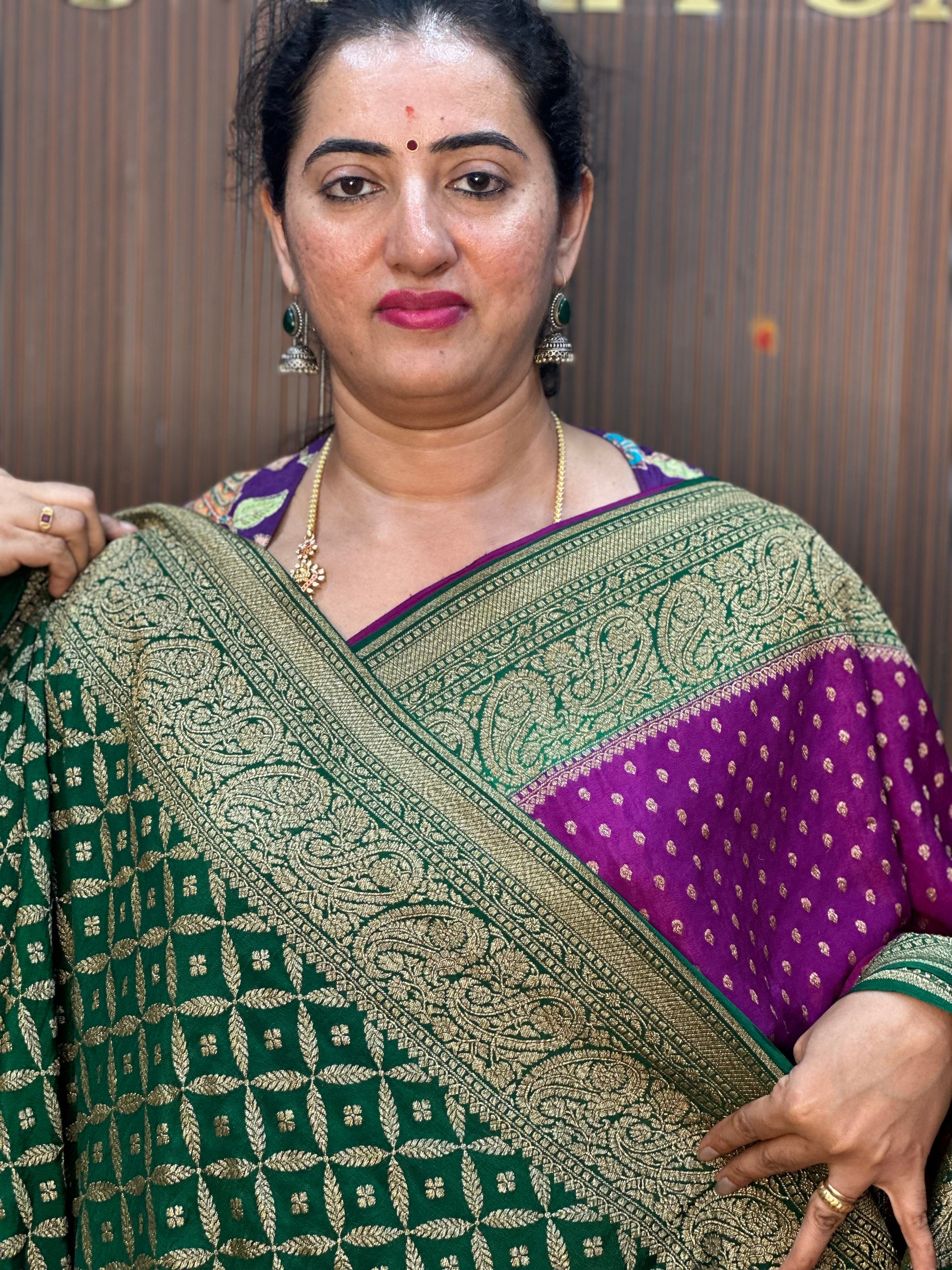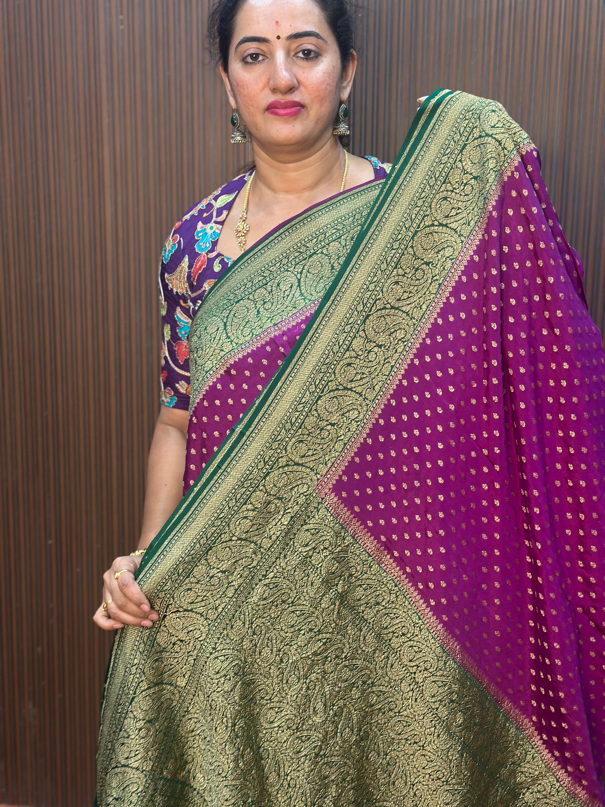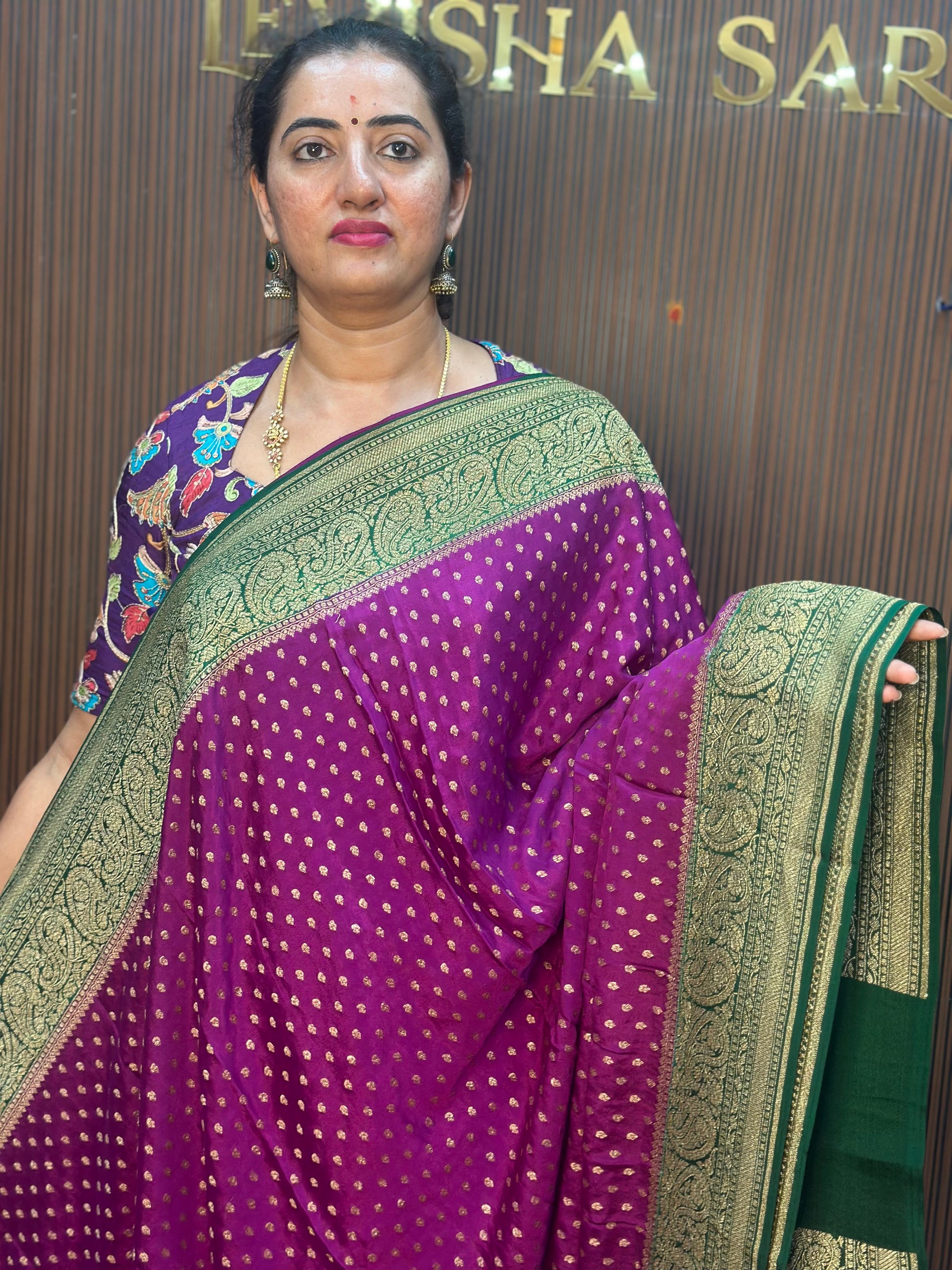 Brinjal colours with green Pure crepe Banaras silk sarees
