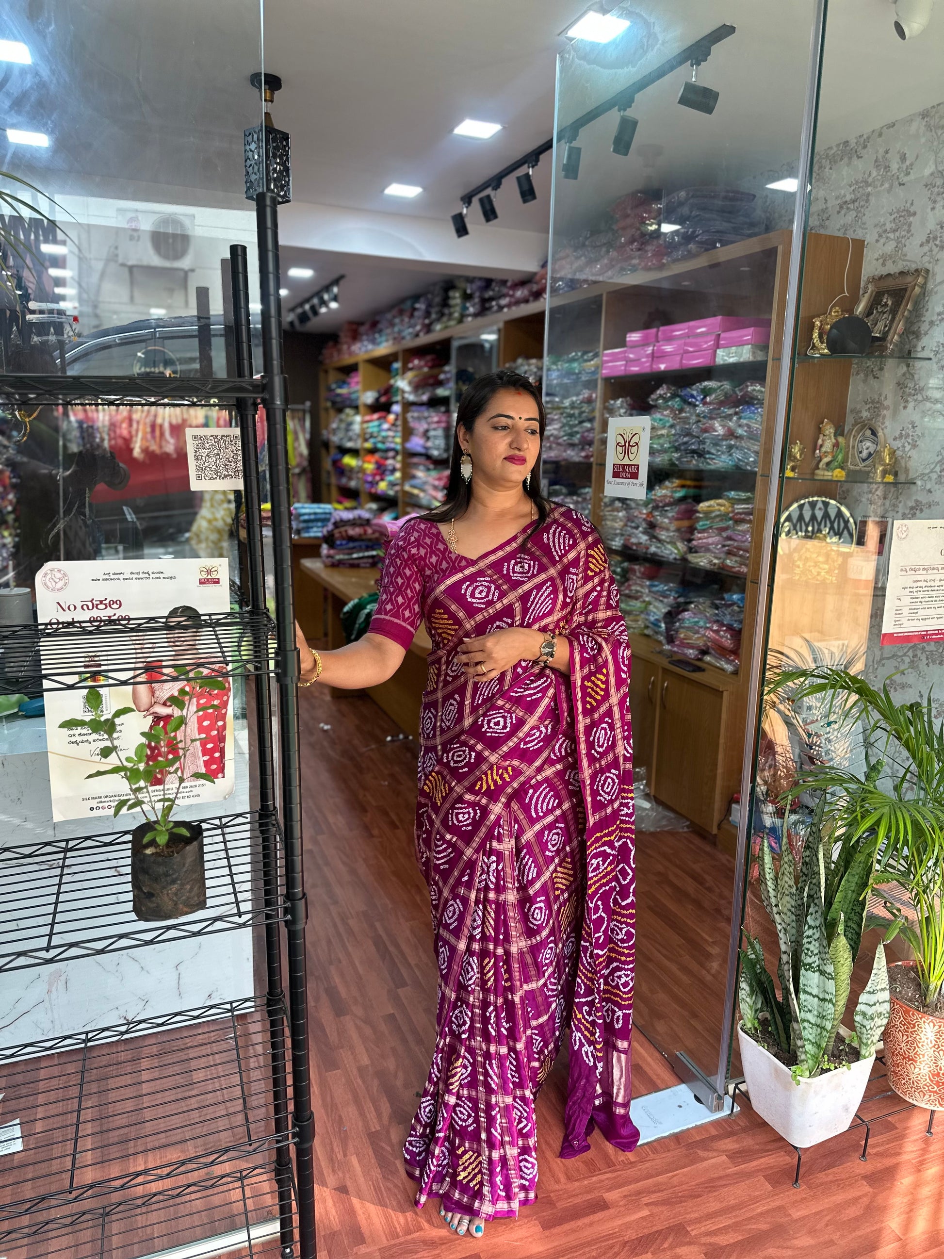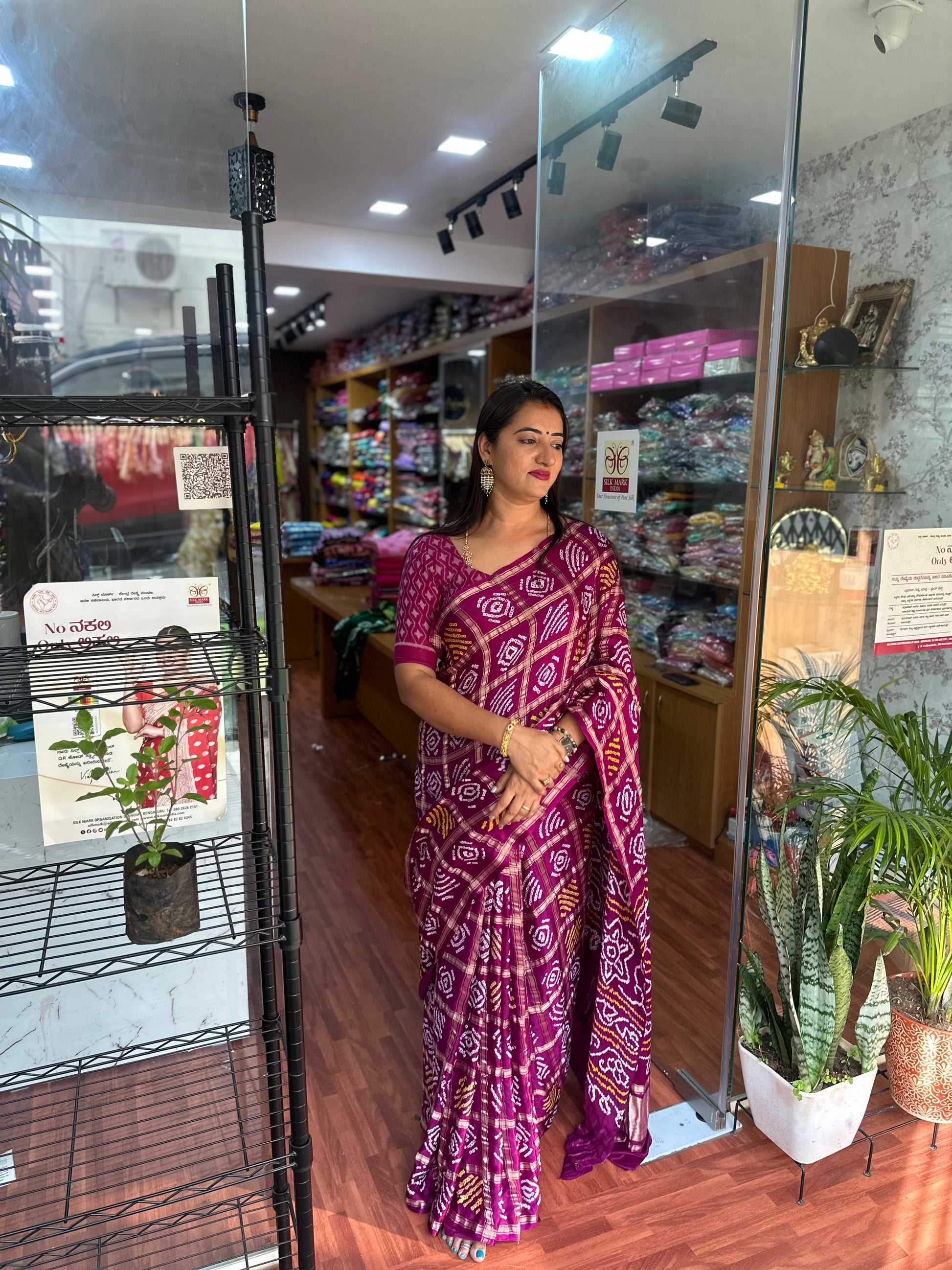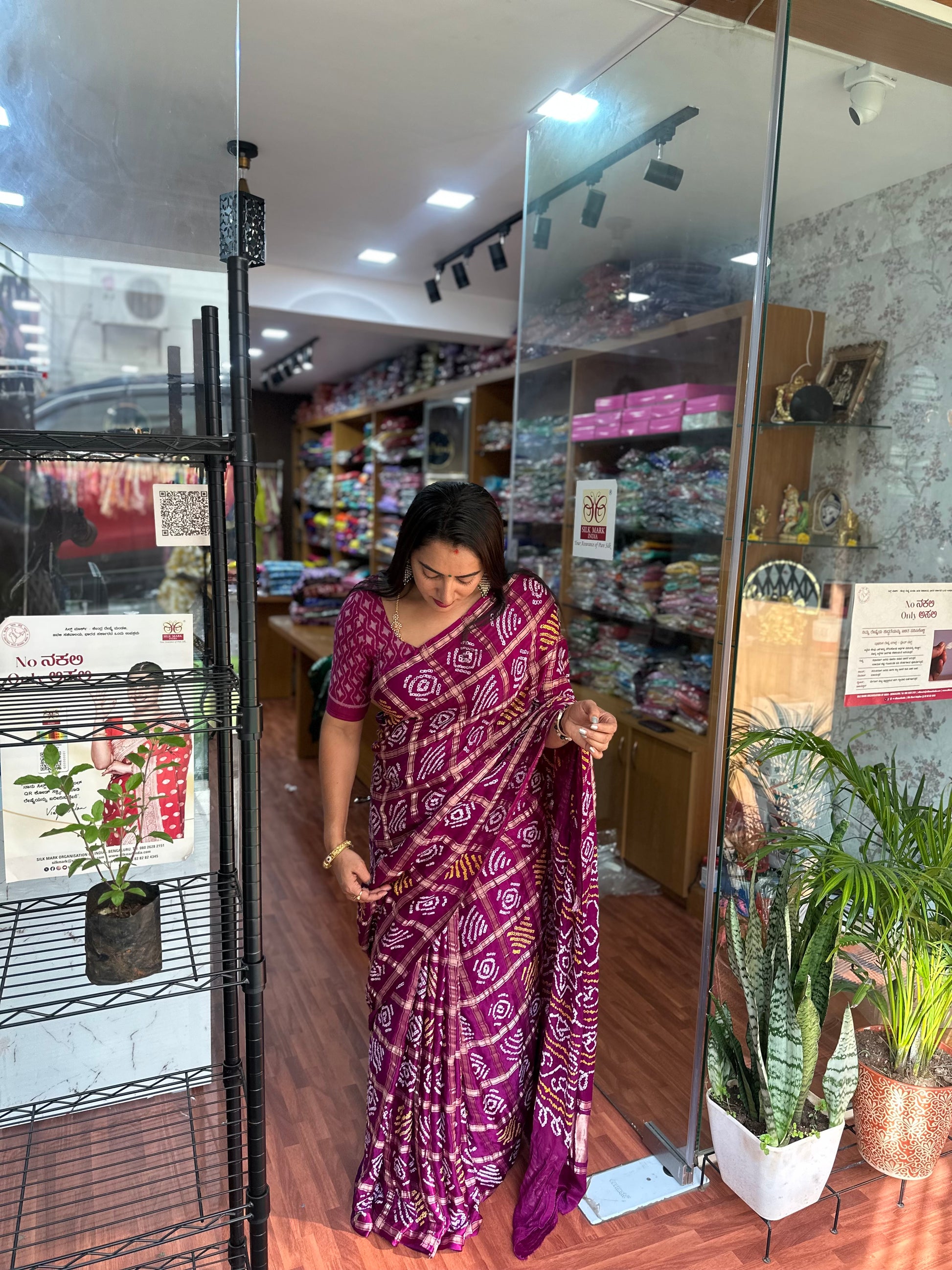 Brinjal purple pure gajji silk sarees Bandini block prints