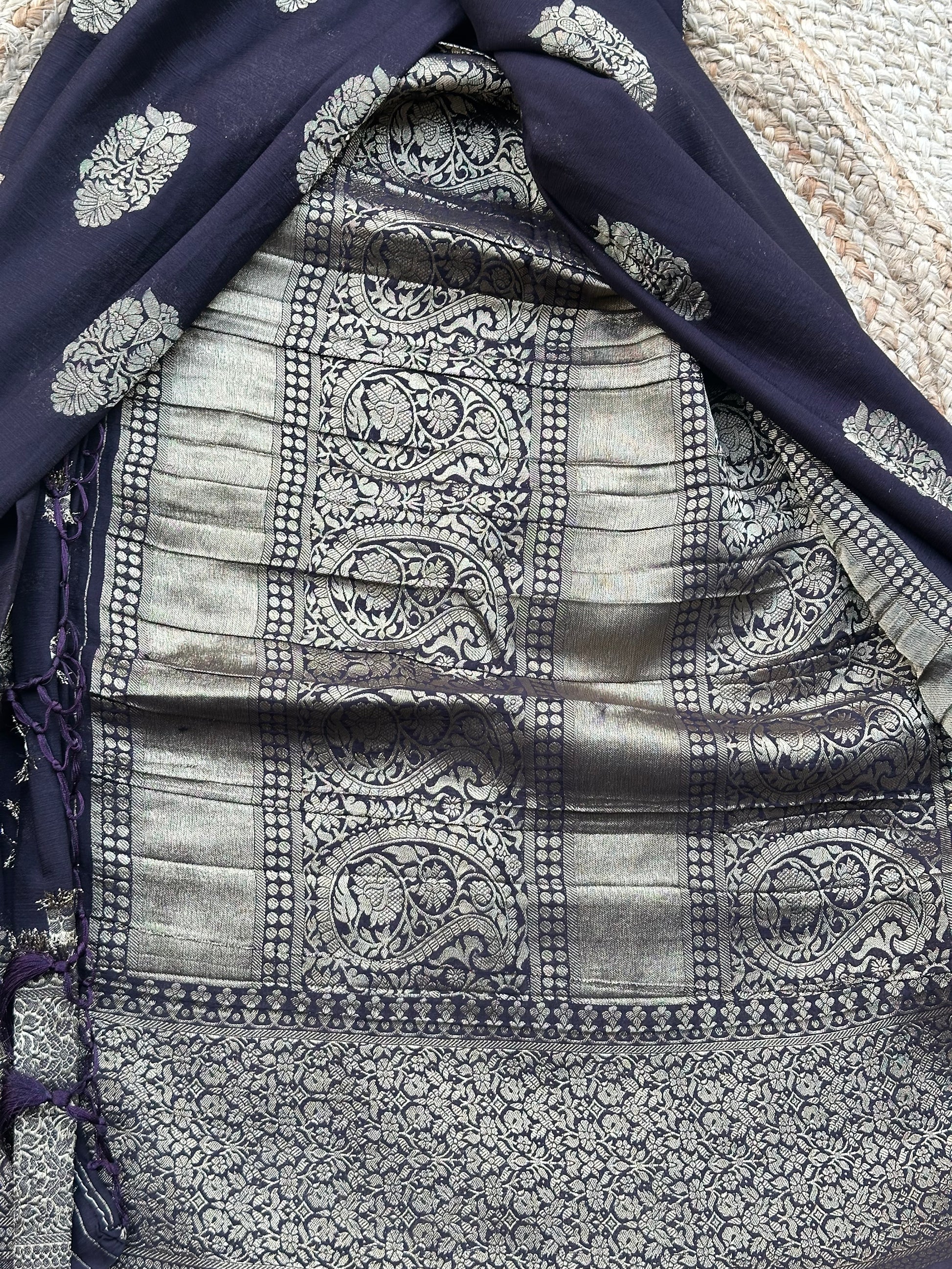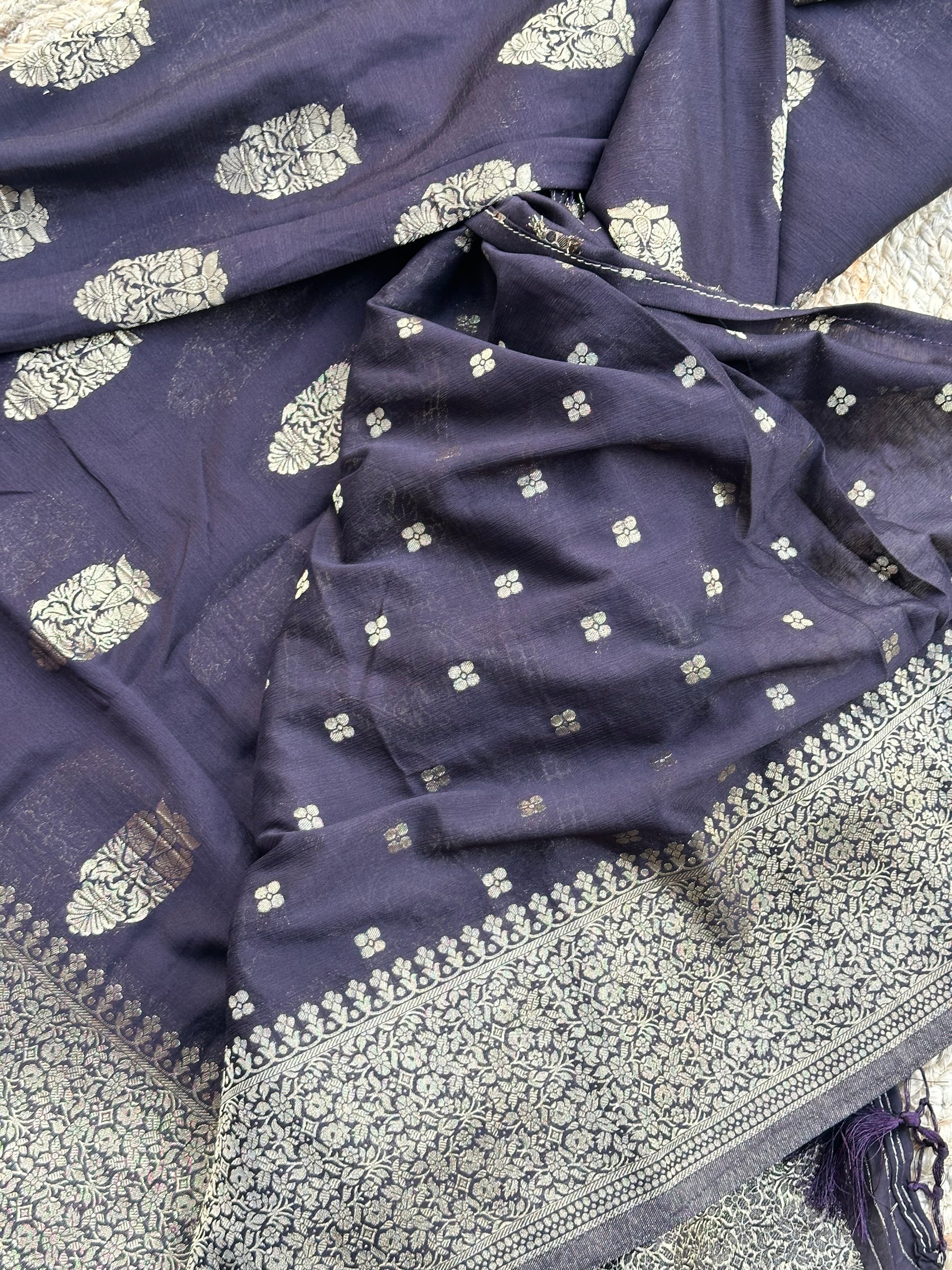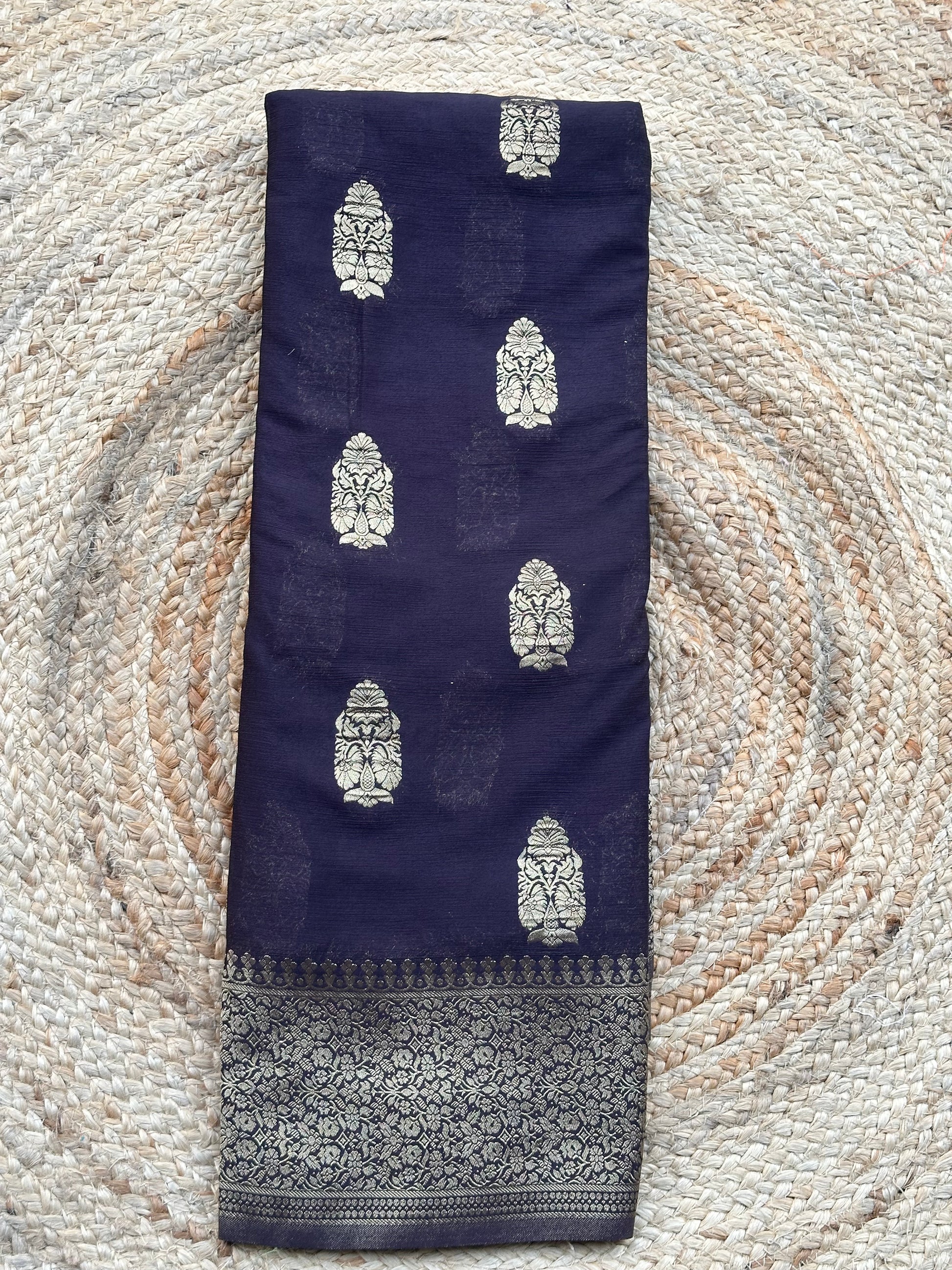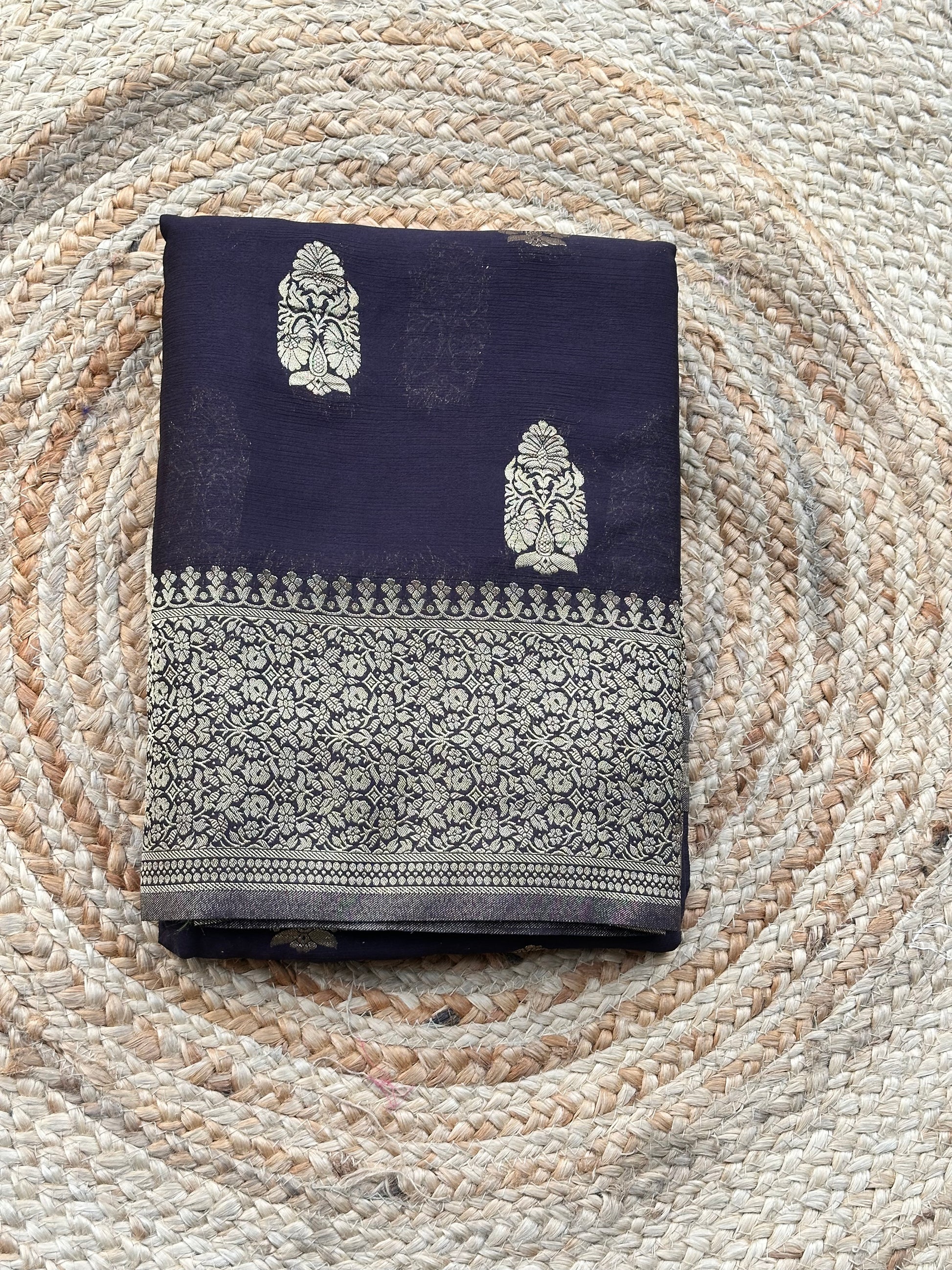 Dark coffee brown soft crepe big butta sarees