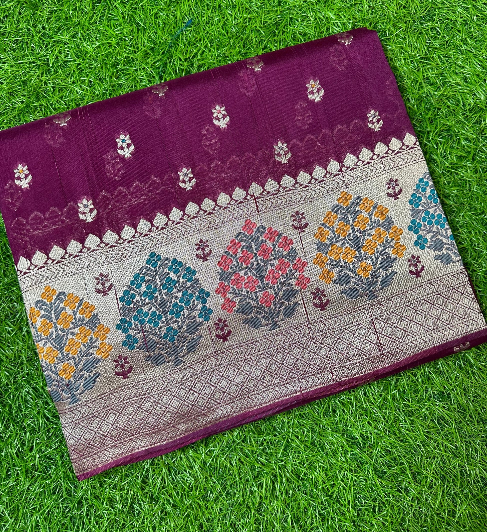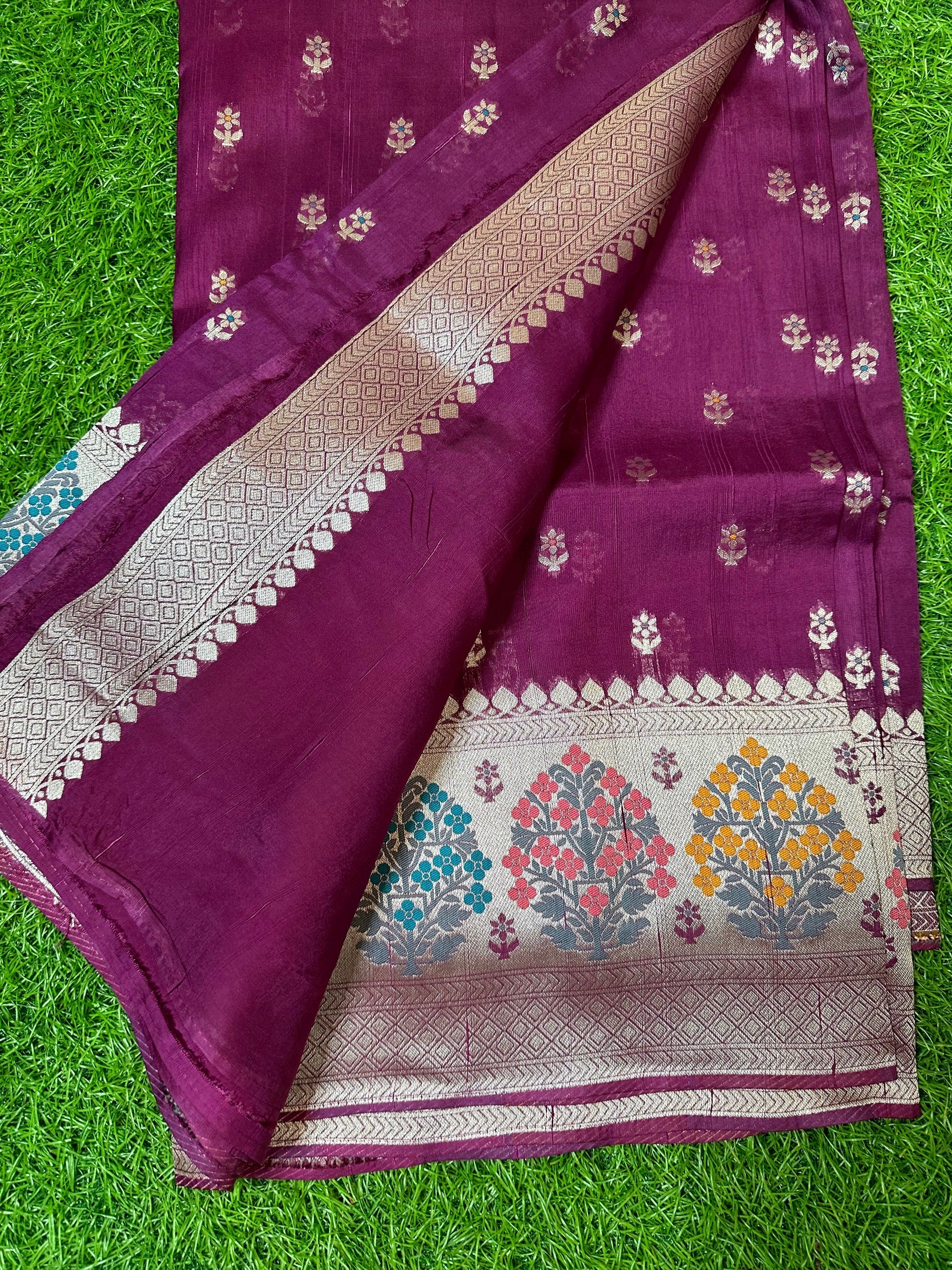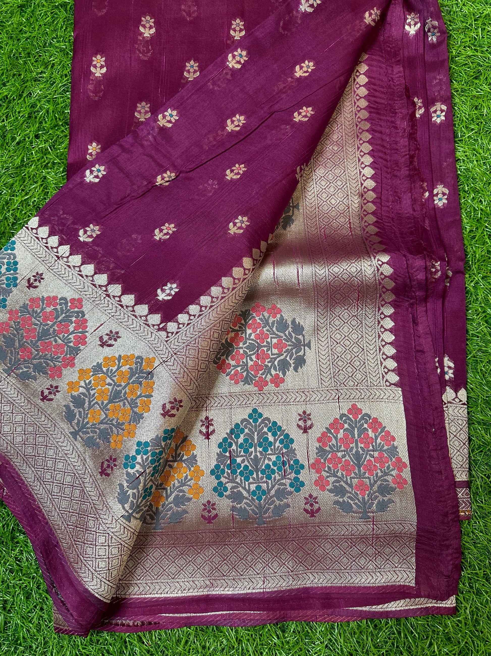 Dark wine tusser with Paithani border.